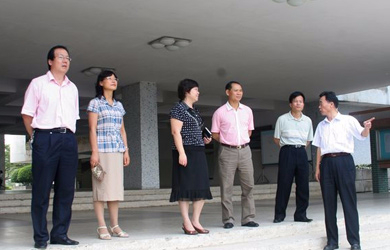 时任东莞市政协主席刘树基(右二)视察我院图书馆