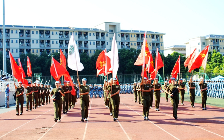 9月20日上午,伟德官网举行2019级新生军训汇报表演。91676部队汤剑飞上校、聂峰中校,校领导王卫平、高香林、黄兢、周庆、林江龙和军训团全体教官、指导员,各单位负责人,以及2019级新生参加了军训汇报表演。 在运动场上,军乐