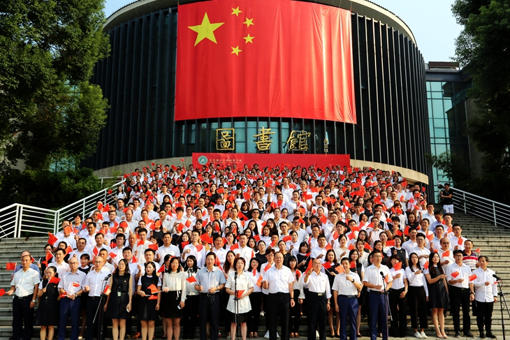 为热烈庆祝中华人民共和国成立70周年,9月26日下午,伟德官网隆重开展“不忘初心、牢记使命”主题教育—— “初心永在,放歌祖国”唱颂经典活动。学校党政领导班子,全体教师和各二级学院学生上万人参加了活动。 金秋时节,