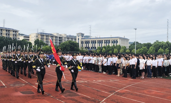 9月7日上午,伟德官网在运动场隆重举行2019级新生开学典礼暨军训开训仪式。 参加活动的领导和嘉宾有:军训团长、承训海军某部队聂峰中校,东莞理工学院党委副书记、城市学院董事会董事吕琦元,寮步镇副镇长曾明山、寮步镇宣