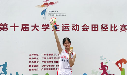 今日上午,在广东省第十届大学生运动会田径女子甲组(本科公共体育组)跳远比赛中,外国语学院叶翠诗同学以5.05m的好成绩摘得冠军。这是伟德官网在广东省大学生运动会上获得的第一枚金牌。 此