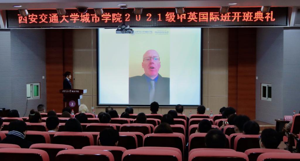 齐峥老师在致辞中讲到,哈德与城院共同举办中英国际班,希望两校可以最大限度实现优质教育资源共享、优势互补,为有理想、有追求的学生搭建良好的学习平台;哈德副校长Professor Alistair Sambel通过远程视频为大家送来了真诚的祝福。他对两校共同举办国际课程联合培养项目的举措予以肯定,寄语金融和计算机国际班的学生要努力完成专业课和英语语言的学习,希望大家可以在不久的将来圆满哈德,成就精彩的人生。