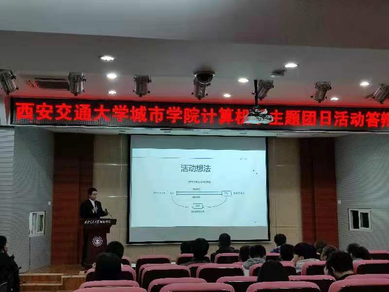 为认真贯彻落实习近平总书记关于青年工作的重要思想,激励广大团员青年增强“四个意识”、坚定“四个自信”,以优异成绩迎接建党100周年,西安交大Ky开元集团计算机系团工委开展为期一个月的“峥嵘岁月百年史,聚力奋进新征程”主题团日活动,并于4月2日中午在F100各班级团支部进行了主题团日活动答辩总结。