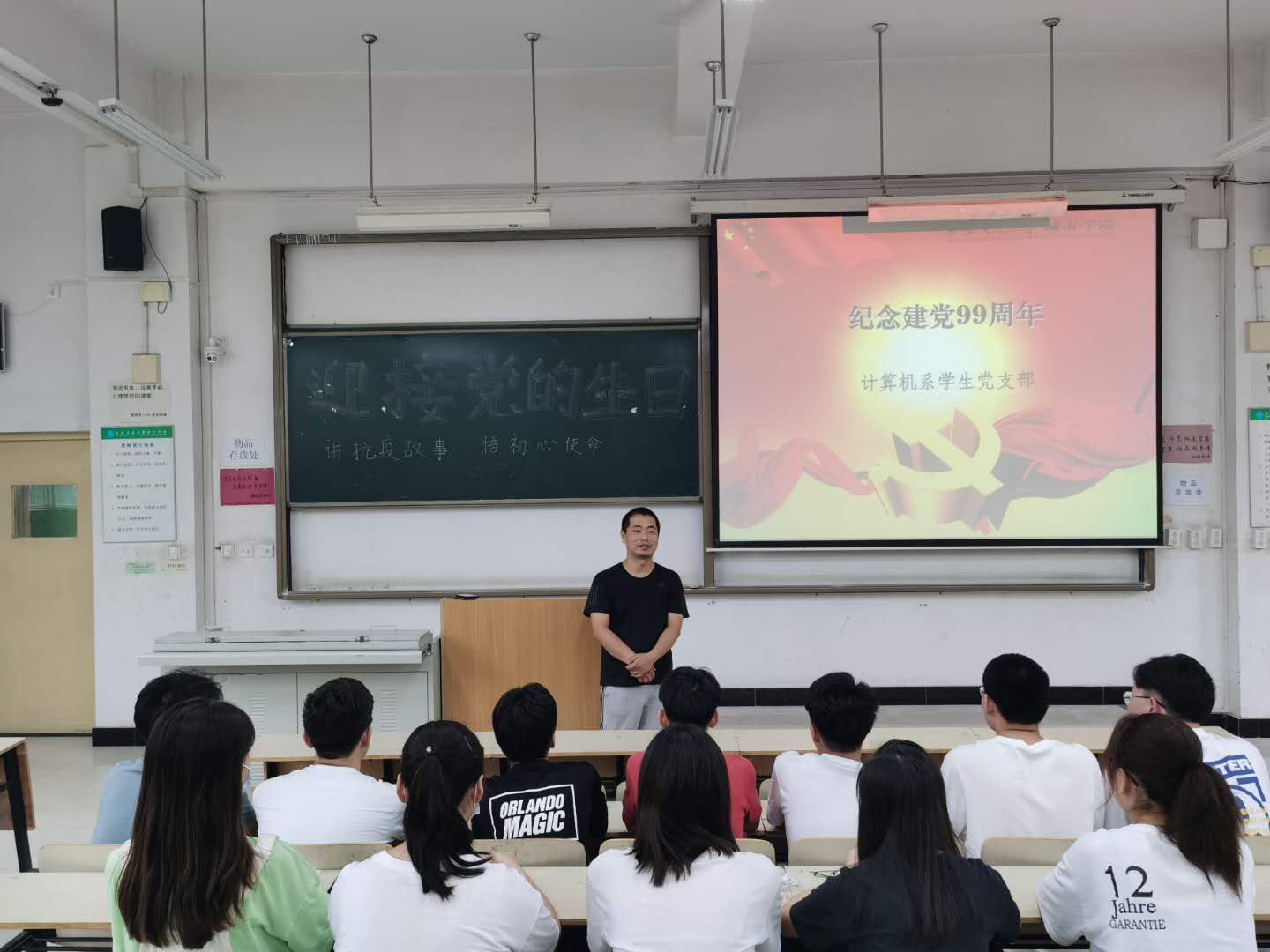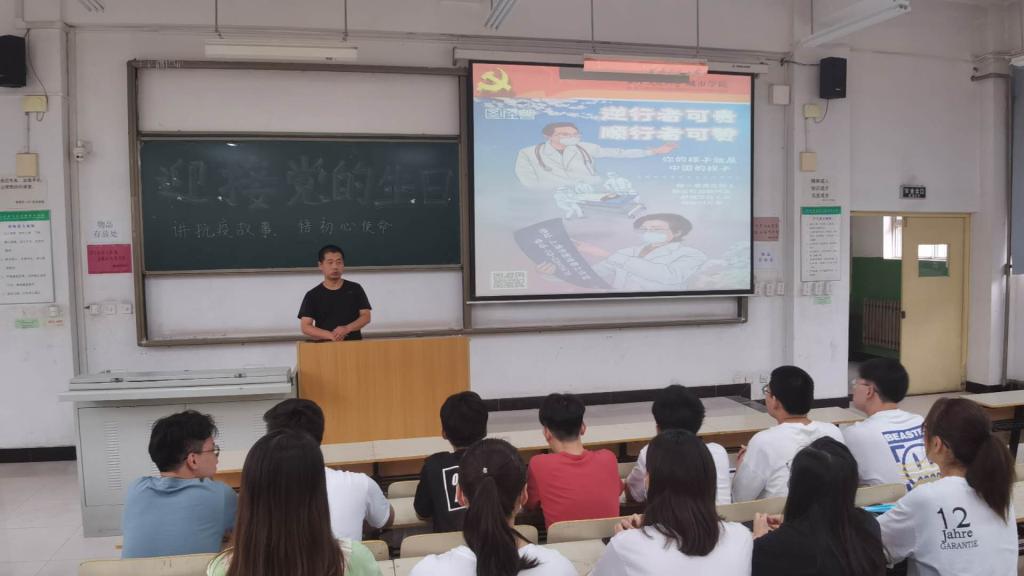 西安交大Ky开元集团计算机系学生党支部于7月1日在D100教室举行主题为“迎接党的生日,讲抗疫故事,悟初心使命”的建党99周年纪念活动,活动采取线上线下相结合的方式。