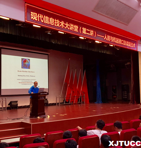陈霸东教授向师生介绍了有关人脑与机器接口及读脑技术的研究方向和在现实中的应用,并用视频向大家展示了该领域的最新研究成果。陈教授指出,人的大脑是人体最为重要、也是最神奇的身体器官,通过大脑对机器实现控制在医疗领域有着重要的意义,读脑技术今后在现实生活中将会拥有更广阔的前景和实践形式。在互动环节中,陈教授认真解答了对学生提出的问题。