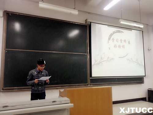 首先,赵凎楠同学向同学们宣读学院“学雷锋月”的相关通知,使同学们了解到“雷锋月”系列活动的内容及相关事项。接着计算机系团学会吴锡晨同学从雷锋生平、精神内涵、媒体评价出发向同学们介绍了雷锋精神的内容与学雷锋精神的必要性,并通过具体而生动的例子向同学们解释了雷锋的“钉子精神”。宣讲会中同学们观看了《永恒的雷锋》、《离开雷锋的日子》等宣传短片来进一步了解雷锋精神。最后吴锡晨同学引用雷锋的经典语录中的话鼓励同学们从实际出发,将雷锋精神践行到日常生活中,将奉献精神当做当代大学生的行动指南。