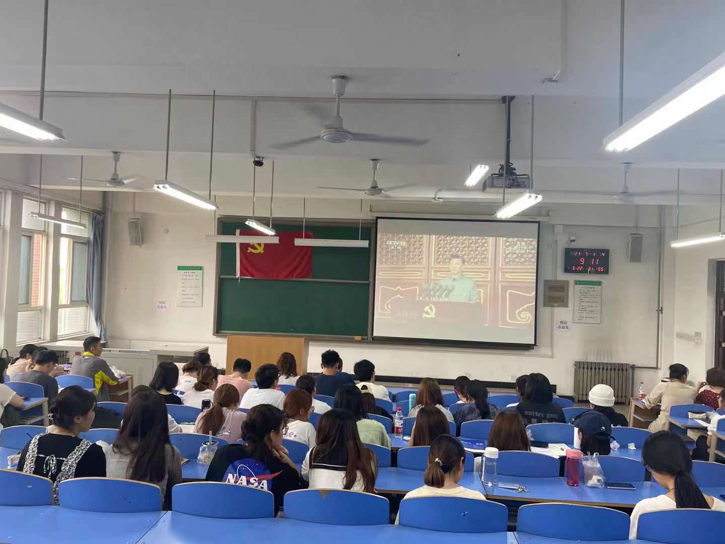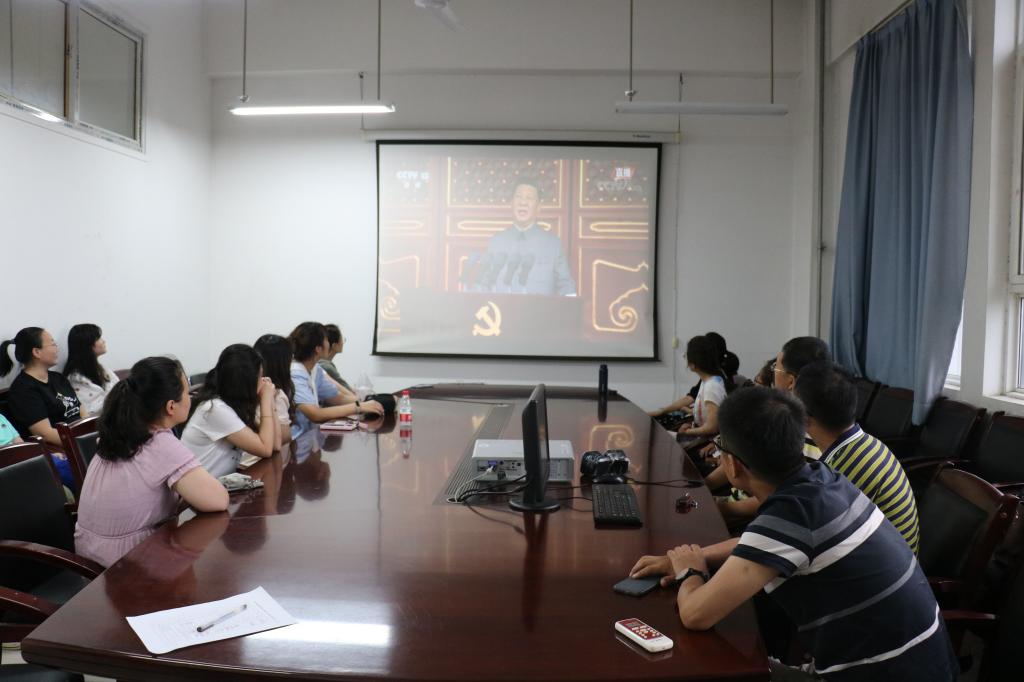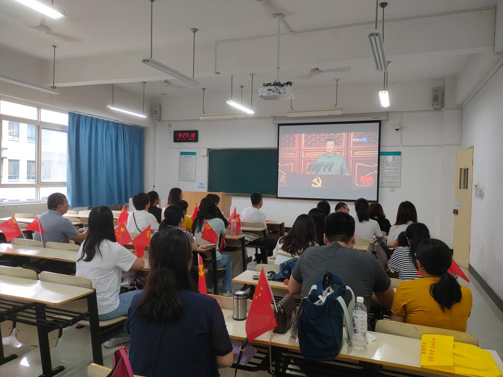 习近平总书记在庆祝中国共产党成立100周年大会上发表的重要讲话,回顾了中国共产党团结带领中国人民不懈奋斗的光辉历程,展望了党和人民事业发展的光明前景,以非常深沉的历史使命感,聚焦于党的远大理想和崇高追求。习近平总书记的讲话慷慨激昂、振奋人心,几个庄严宣告,让师生党员们前所未有的感受到了作为一名中国共产党党员的荣誉感和自豪感,在师生中产生了强烈反响和共鸣,观看过程中不时传出阵阵掌声。大家纷纷表示,要认真学习、贯彻、落实讲话精神,牢记党的初心使命,向着第二个百年奋斗目标、向着中华民族伟大复兴的中国梦奋勇前进!