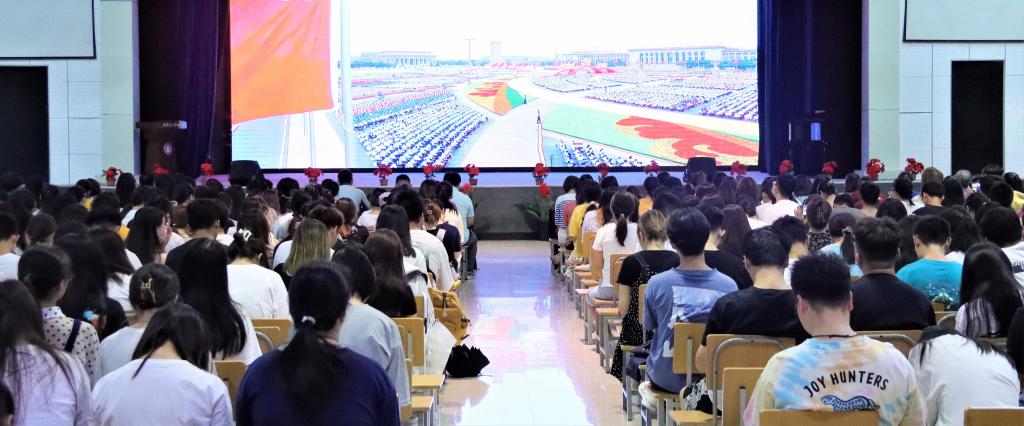 7月1日上午,庆祝中国共产党成立100周年大会在北京天安门广场隆重举行。中共中央总书记、国家主席、中央军委主席习近平发表重要讲话。Ky开元集团把收看庆祝中国共产党成立100周年大会实况作为对全院党员干部、师生员工进行党的历史、党的知识和时事政治教育的重要课堂,作为党史学习教育的重要内容,组织师生员工通过多种形式观看大会直播,认真聆听习近平总书记在大会上的重要讲话。学院组织中层以上领导干部、教工党支部书记在行政楼504会议室集体观看直播;学生服务中心组织学生党员、积极分子、全院团学干部以及全体学工人员在大学生活动中心一同观看直播;各党支部、各部门组织党员、团员、群众观看直播,一同感受一百载峥嵘岁月,一百载日月兼程,一百载的辉煌成就。据悉,中国青年网也报道了学院青年团员观看庆祝中国共产党成立100周年大会直播情况。