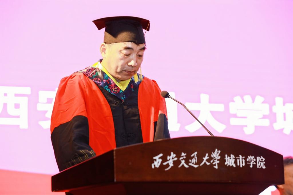 陈光德院长深情发表了讲话,与毕业生一起回顾了大学四年里的点滴收获、成长和遗憾。毕业生们与学院一同走过的这四年,“抗疫”占了近三年。同学们打卡刷码、在线学习,给予了“抗疫”大局充分的理解与支持。陈院长感谢毕业生们的顾大局、识大体。各位毕业生是学院发展的见证者,更是学院发展的参与者。在2022届毕业生即将踏出校门走上社会之际,他对全体毕业生提出了希望:希望大家“志存高远,勇于担当”“直面困难,脚踏实地”“善于合作,共赢发展”。作为首批毕业的“00后”大学生,希望大家在今后的人生征途中不负韶华、不负时代、不负使命,努力成长为有志气、有底气、有骨气的时代新人!无论离开多久,母校永远欢迎大家回家!在毕业生们即将开启人生新征程之际,陈院长衷心地祝福2022届毕业生们事业有成,生活幸福!