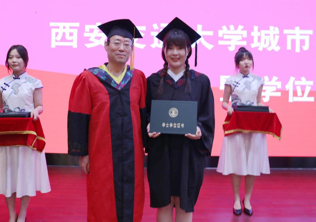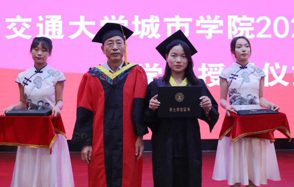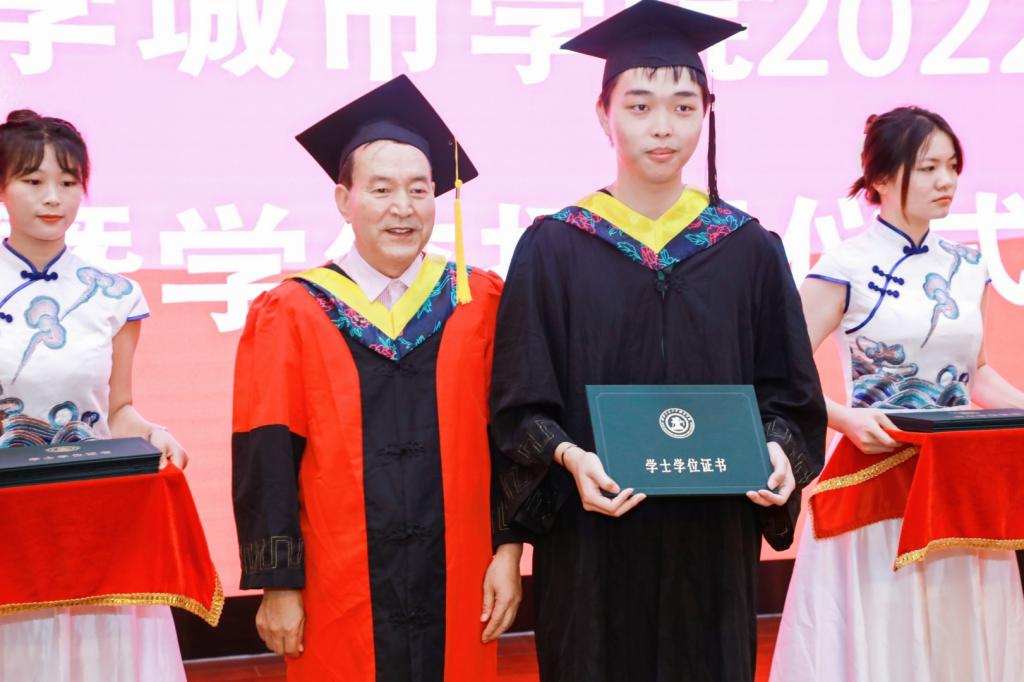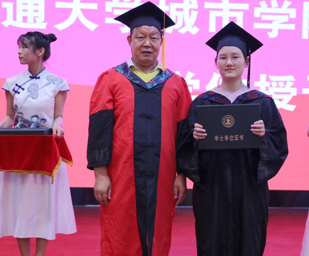 在传播系播主181严明欣同学、管理系会计185惠新嵛同学的带领下,全体毕业生集体进行宣誓:感恩父母养育,不负师长教诲;铭记城院校训,矢志爱国奋斗。砥砺前行,开拓创新。坚守理想,书写华章。百年峥嵘岁月,城院青年,守初心之星火。今朝风华正茂,城院青年,铸明日之辉煌。大家声音洪亮,场面庄严而隆重。