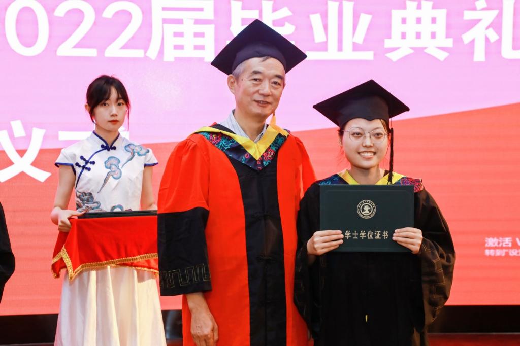 在庄严肃穆的国歌声中,大会正式开始。首先,朱旭副院长汇报2022届毕业生学业情况。朱旭副院长对顺利完成学业,获得本科学士学位的同学表示衷心的祝贺!希望大家继续努力,取得更大的进步!
