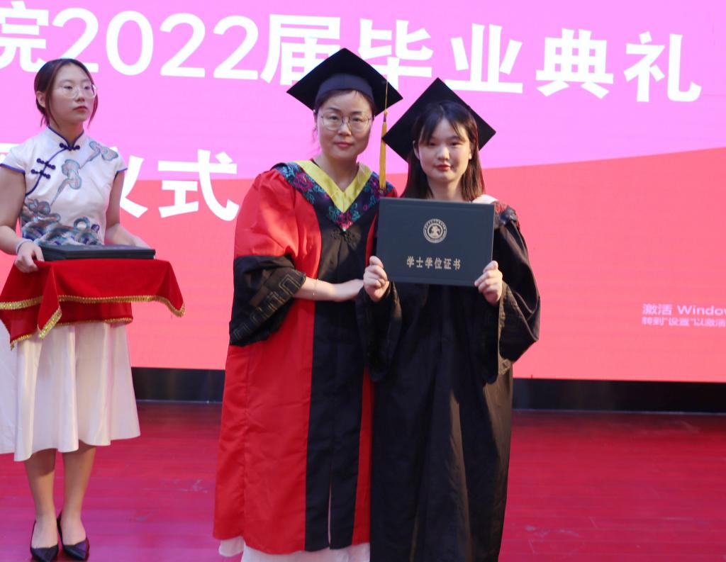 张爱萍书记宣读关于省级优秀毕业生、优秀学生干部,学院2022届优秀毕业生、优秀毕业生干部、基层计划优秀毕业生及“就业之星”“就业积极分子”的表彰决定。宣读李彤等23名学生获省级“优秀毕业生”称号,魏磊等3名学生获省级“优秀学生干部”称号,授予白明杰等178名学生为2022届院级“优秀毕业生”称号,授予陈妍等58名学生为2022届院级“优秀毕业生干部”称号,授予刘钰彤、王亚云、李佳佳、詹静琦、刘文慧、苏若彤、郭星驰、王菲菲、邱康康、谢莹、贾健栋11人为2022届基层计划“优秀毕业生”称号,授予王文昕等11名同学Ky开元集团“就业之星”荣誉称号,授予惠新嵛等27名同学Ky开元集团“就业积极分子”荣誉称号,并颁发证书,以资鼓励。希望受表彰的毕业生谦虚谨慎、戒骄戒躁、锐意进取、不断进步、服务基层,在未来的工作岗位上敬业勤业、勇于开拓、再创佳绩,为母校增光。