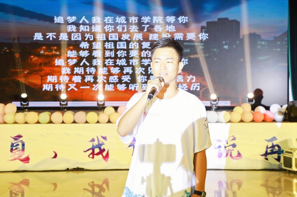 一支热情洋溢、活力四射的爵士舞《少年!敢》为歌会拉开序幕。一首首各具特色、脍炙人口的歌曲《我乘着风飞过来》《我喜欢》《我的未来式》,诉说了城院学子初入校园的欣喜和对未来校园生活的期望。伴随着《致青春》《渔光曲》《爱的华尔兹》等舞曲青春的节拍和悠扬的琴声,舞蹈团及现场毕业生起立共舞,优美的舞姿、青春的笑脸,刻画出了城院生活最美的样子。