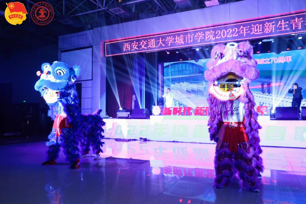 驰骋未来,续写新章。本次迎新歌会创新形式,表演节目从舞台走近观众,现场互动氛围满满。既有经典朗诵节目《城院青春的故事》带你感受属于城院独有的阳光气息与青春活力。又有中华传统舞龙舞狮舞剑与歌曲的完美结合,献上独特的跨界视觉盛宴,更有气氛超爆的氛围感走秀表演,掀起歌会阵阵浪潮。同时,本场晚会通过新媒体云平台实时直播,其中图片直播浏览人数累计近70万人,抖音平台点赞数近2万,直播成就超过了99%的同级别主播,在云端与2022级新生和家长朋友们共度了一个美好青春夜晚。