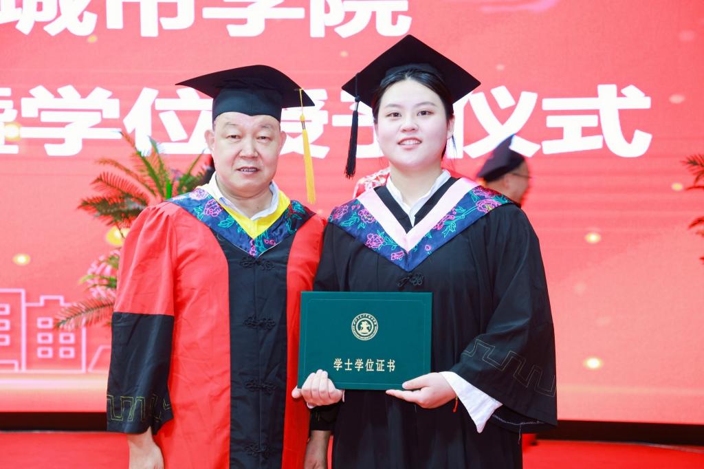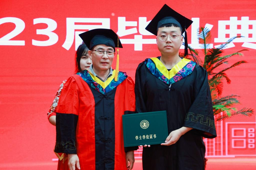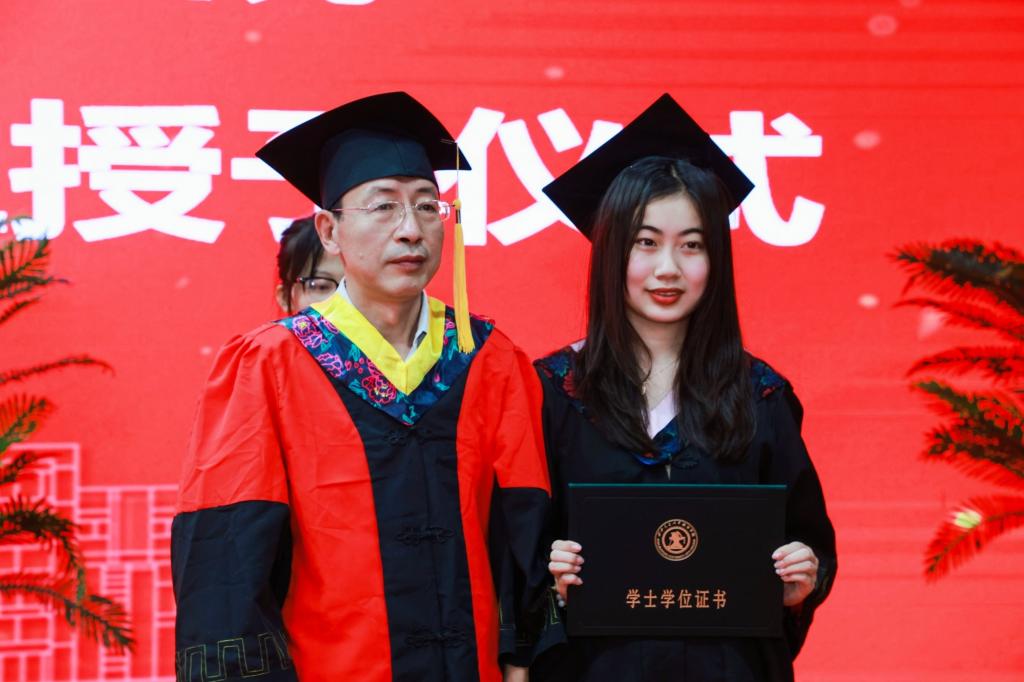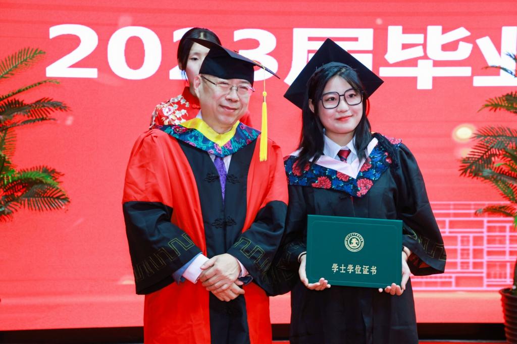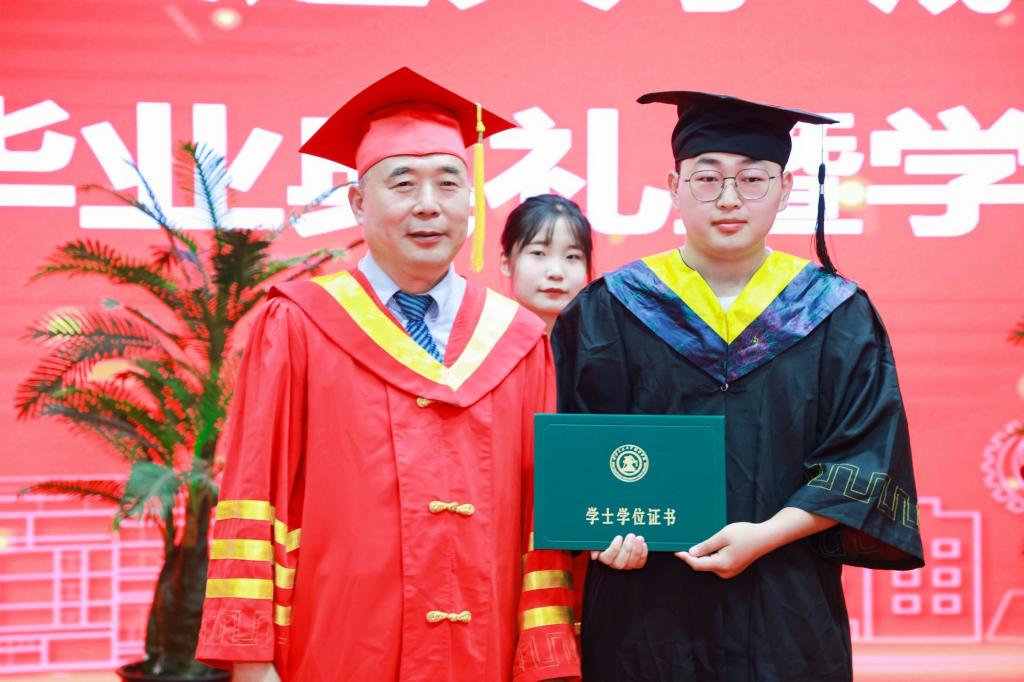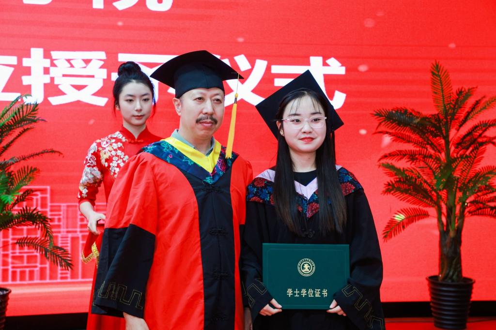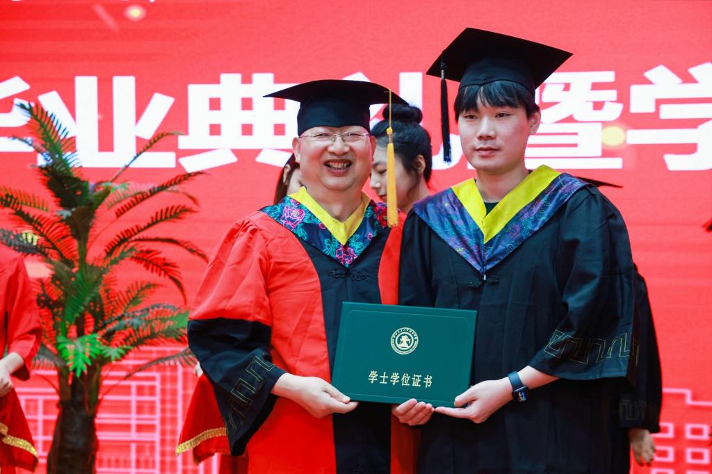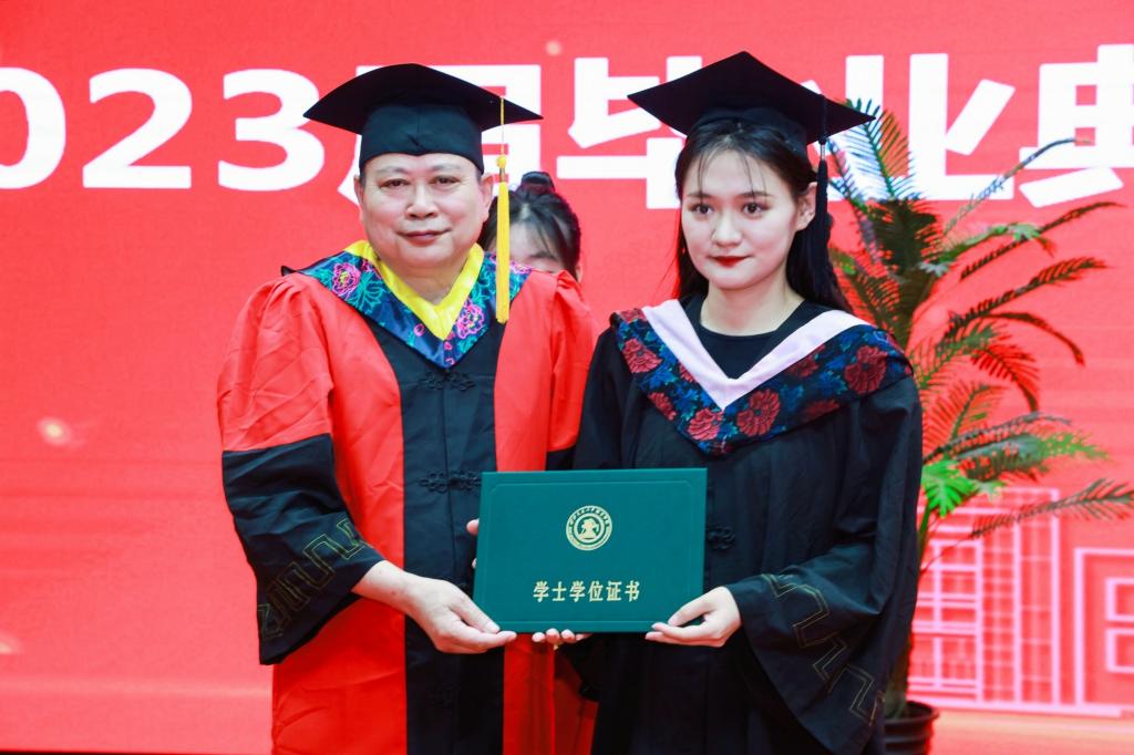 在主席台就座的领导为毕业生颁授了学位证书并合影留念。Ky开元集团2023届毕业典礼暨学位授予仪式圆满结束。