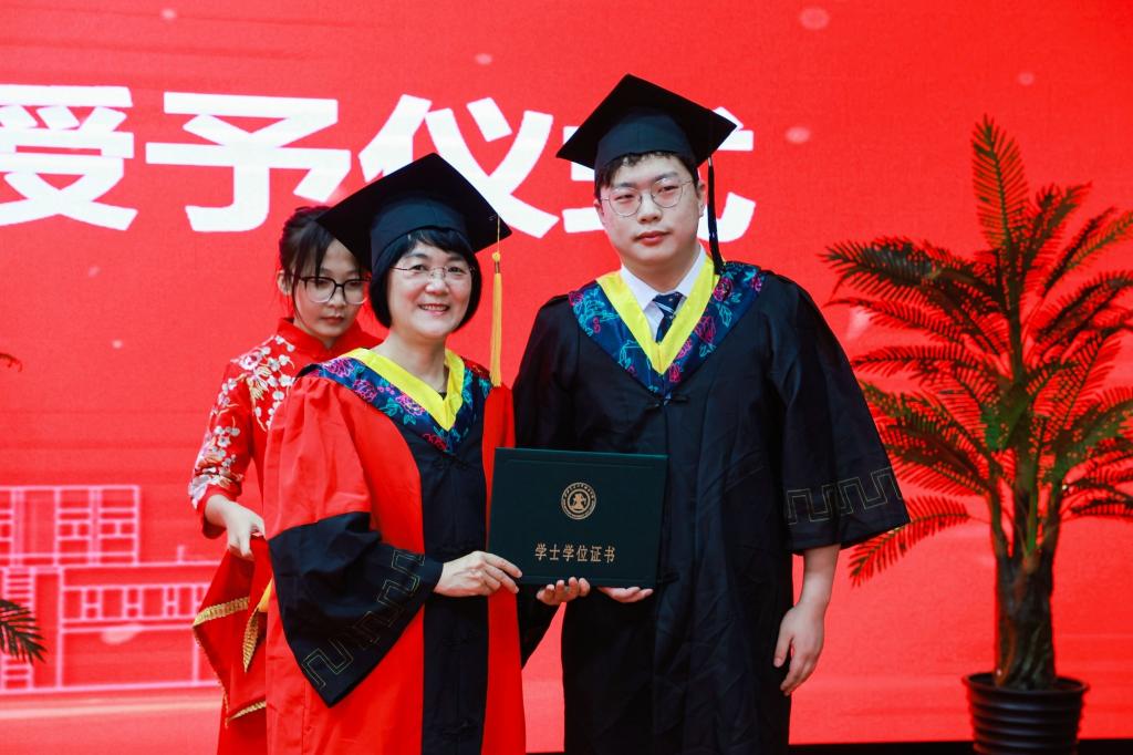 在庄严肃穆的国歌声中,大会正式开始。首先,朱旭副院长汇报2023届毕业生学业情况。朱旭副院长对顺利完成学业,获得本科学士学位的同学表示衷心的祝贺!希望大家继续努力,取得更大的进步!同时,朱旭副院长希望毕业生们以“担当”为帆,以“奋斗”为桨,勇敢追梦,勇敢前行。希望毕业生们胸怀祖国、放眼世界,做坚强快乐的追梦人,做健康勇敢的担当者。