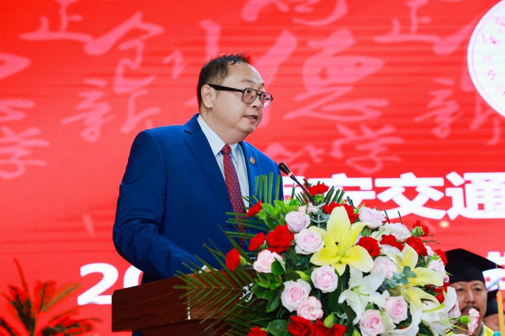 陈光德院长发表了讲话,与毕业生一起回顾了大学四年里的点滴收获、成长和遗憾。毕业生们与学院一同走过的这四年,疫情伴随了大家学业中的大部分时间。在相当困难的日子里,毕业生们积极配合学院疫情防控,克服种种困难与不便,默默承担来自疫情、学业、就业的多重压力,经受住了时代的考验,顺利完成了学业和就业,体现了当代大学生的认知、责任和担当。陈院长为大家点赞!在2023届毕业生即将踏出校门走上社会之际,他对全体毕业生提出了希望:希望大家“怀抱梦想,志存高远”“脚踏实地,求真务实”“勤学善为,砥砺前行”。无论走到哪里,城院都将是毕业生们坚实的后盾、温暖的港湾。母校坚信,每位毕业生一定能创造属于自己的人生辉煌!无论离开多久,母校永远欢迎大家回家!在毕业生们即将开启人生新征程之际,陈院长衷心地祝福2023届毕业生们事业有成,生活幸福!