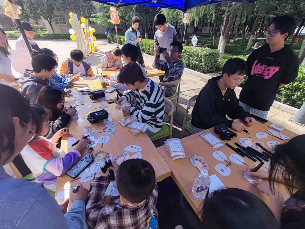 “海上生明月,天涯共此时”。为了弘扬中国传统文化,学生们身着古装,带着百余首经典诗词与其他人对诗互动。套圈、投壶、猜灯谜和画团扇等活动也让同学们留恋忘返、欢声笑语不绝于耳。外籍教师Nosheena在活动现场学写中国字,打卡主题墙,一同感受中国传统节日的乐趣。张爱萍书记与学工队伍、中快餐厅经理等一起为学生赠送爱心月饼、水果、饮料和礼品。活动现场“饼”香四溢,师生同乐,充满着歌声、笑声、喝彩声,洋溢着浓浓的节日气氛。