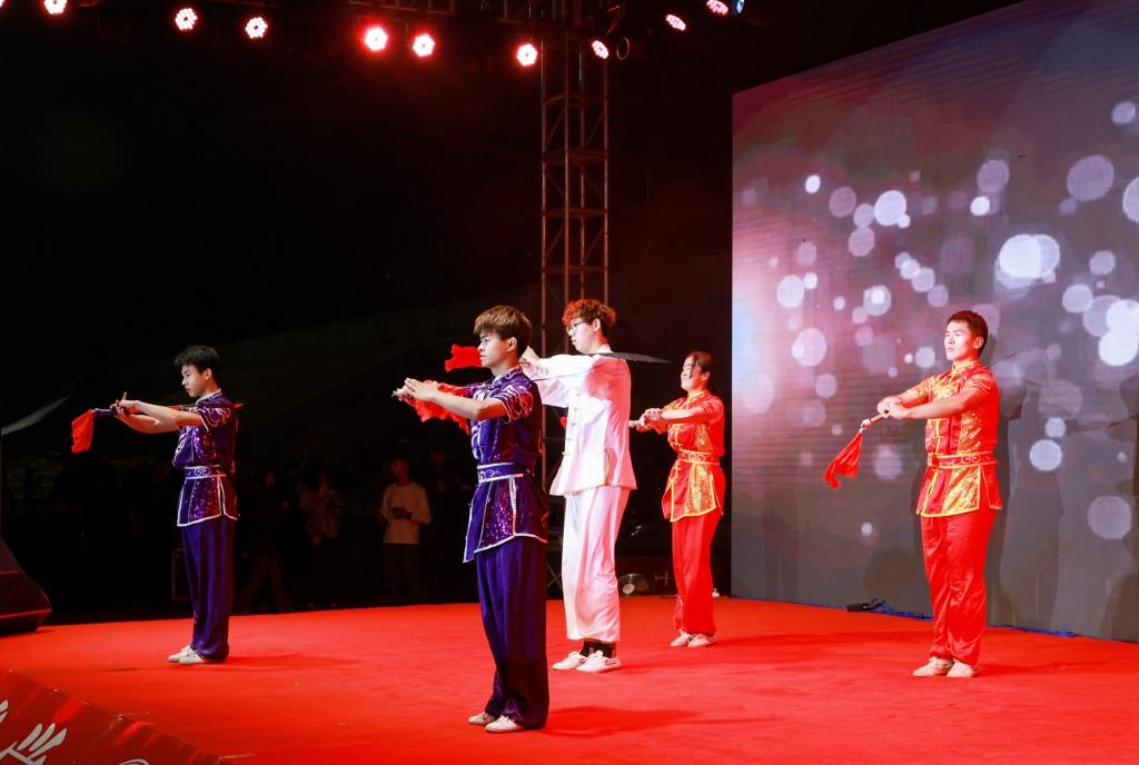 “逐光而行,追光前行”,接近尾声的第三篇章由音乐社和吉他社带来的一首充满力量的歌曲《生活因你而火热》,高亢的歌声引起毕业生阵阵共鸣,晚会现场灯光绚丽、节奏欢快、气氛热烈。由街舞社带来的精彩热舞《Doctor papper》点燃了全场的热情,变化纷繁的背景下,动感十足的舞蹈,尤其是新生代表杨爱玲和程思雨酷帅有力的舞蹈动作让观众尖叫不断。一支由武术队带来的《以武会友》结合气势磅礴的音乐,刀剑行走、虎虎生风,展现了中华武术之“魂”的魅力,器械、拳法动作将中华功夫的神韵的气势展现得尤为奥秘,引起台下掌声不断。保卫祖国的战士,泱泱华夏,熠熠山河,随着国旗护卫队带来的《军礼》讲述将晚会推向了的尾声,李志林等四位退役军人同学,他们激情澎湃地讲述着自己的入伍经历,观众们的掌声热血沸腾,纵使青春的汗水打湿衣衫也永远让人怀念少年的我们有着青春独特的意义。一场又一场精彩的表演展现了同学们高超的才艺。晚会的尾声以辅导员代表和新生代表的朗诵结束,《追光者》的朗诵和歌曲表达对自由的向往,对梦想的坚持,他们用最充沛的情感表达着对西交大城院的赞美和感激之情,为本次的活动画上了圆满的句号。