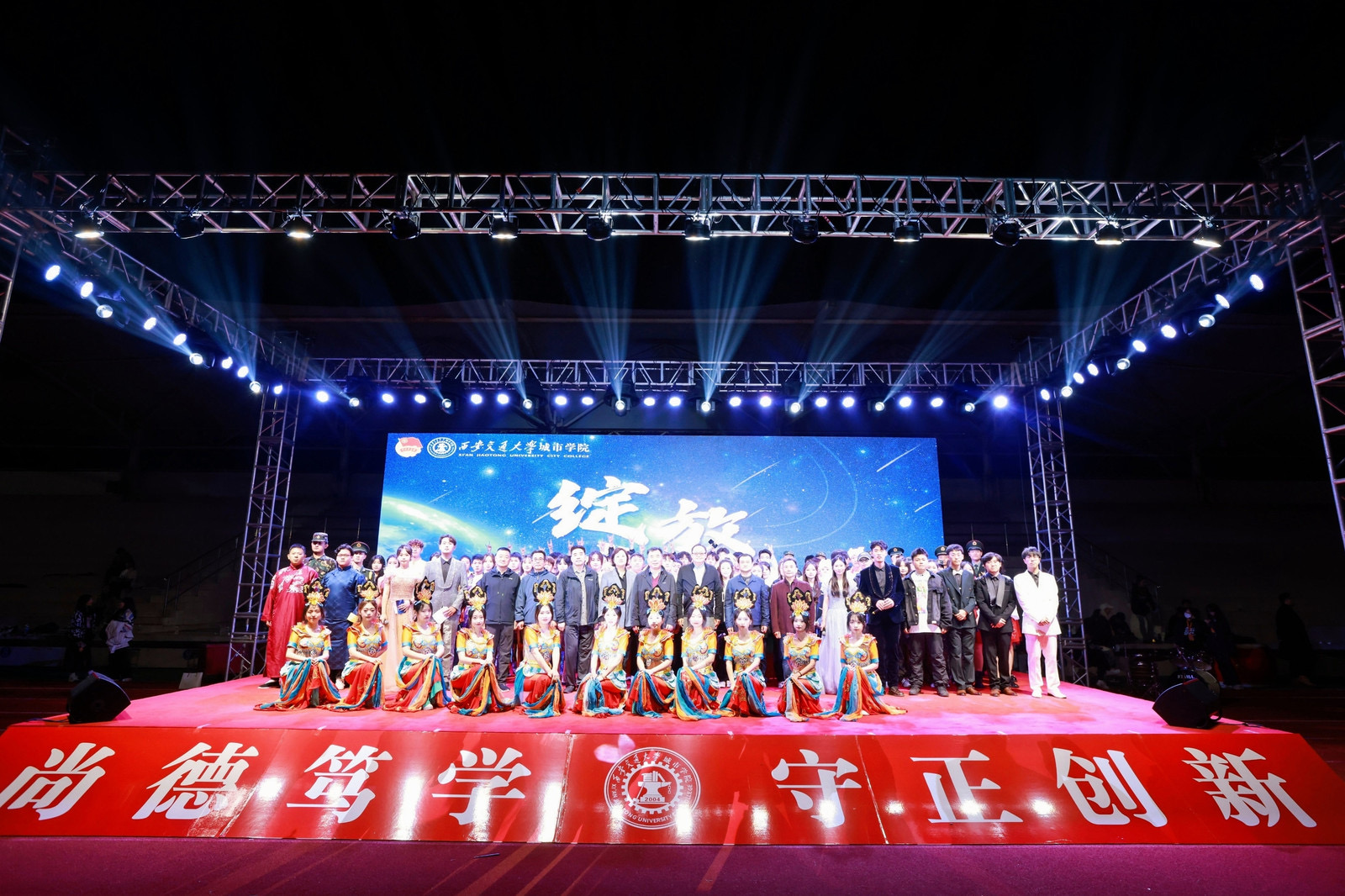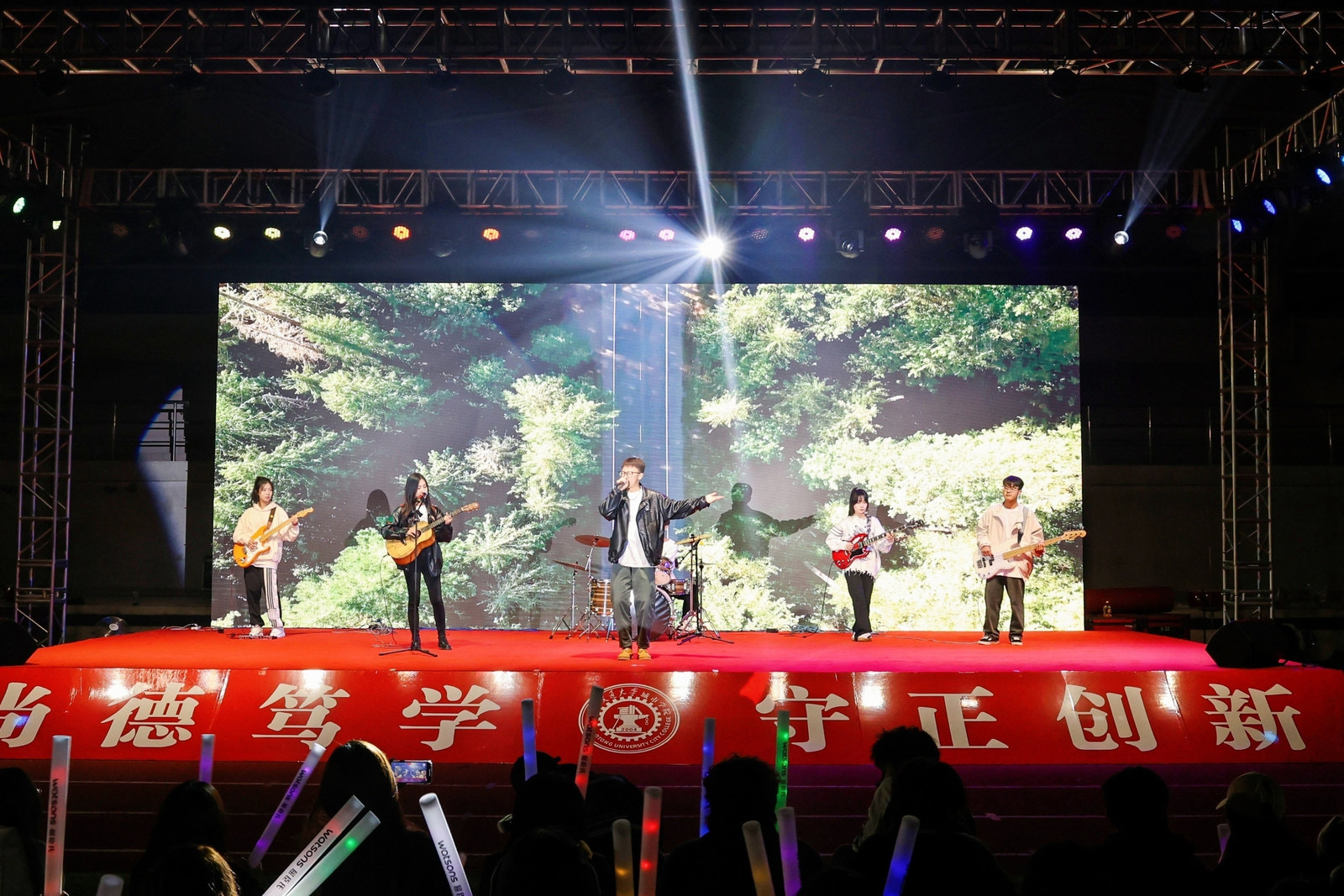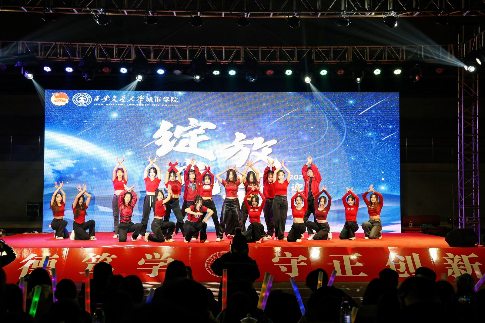 开场歌曲一首《绽放》瞬间点燃了晚会的氛围,同学们高亢、充满活力的声音表达了对青春的热爱和激情,赢得了观众的阵阵欢呼。伴随一支极具陕北民俗特色的腰鼓舞蹈《鼓舞盛世》和龙狮队的两头小狮子闪亮登场,拉开了第一篇章“城约而至”的序幕。计算机系王艺博老师和东304乐队带来的《再见杰克》动感旋律,激昂歌声,燃起现场的火热氛围。一支以莲花为特色的古典舞《沁莲》结合了中国传统文化与现代舞蹈形式,给观众带来一种自然、优美的表演艺术体验,说唱歌曲《we we》和充满艺术感与浪漫的拉丁舞《京韵》表演令人热血沸腾,一次又一次将晚会推向高潮。