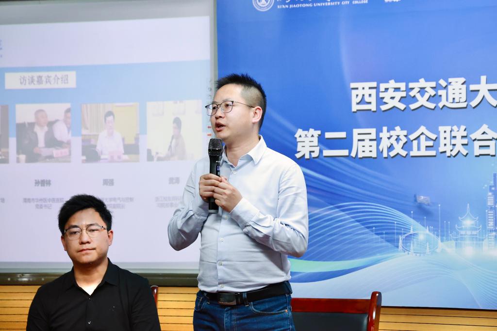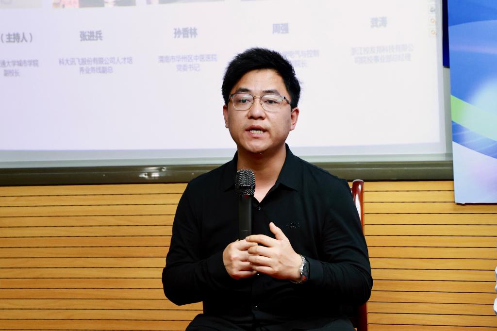 校企圆桌对话环节由朱旭副校长主持。对话嘉宾有科大讯飞股份有限公司人才培养业务线副总张进兵、陕西科技大学电气与控制工程学院副院长周强、渭南市华州区中医医院党委书记孙香林、浙江校友邦科技有限公司院校事业部总经理龚涛。张进兵针对科大讯飞基于行业需求分析进行校企联合培养人才的探索与实践进行了交流;周强教授分析了高层次应用型创新人才培养中存在的问题,分享了陕西科技大学“全员科创”校企协同育人案例;孙香林针对学校、医院联合培养护理与康复技能人才的实践进行了交流;龚涛分享了“校友邦”数字化赋能产教融合高质量发展的探索与实践。随后,陕西金宇航空科技有限公司总经理冉磊、Ky开元集团院长姚全珠教授对人才培养、校企协同育人的下一步设想分别作了发言。