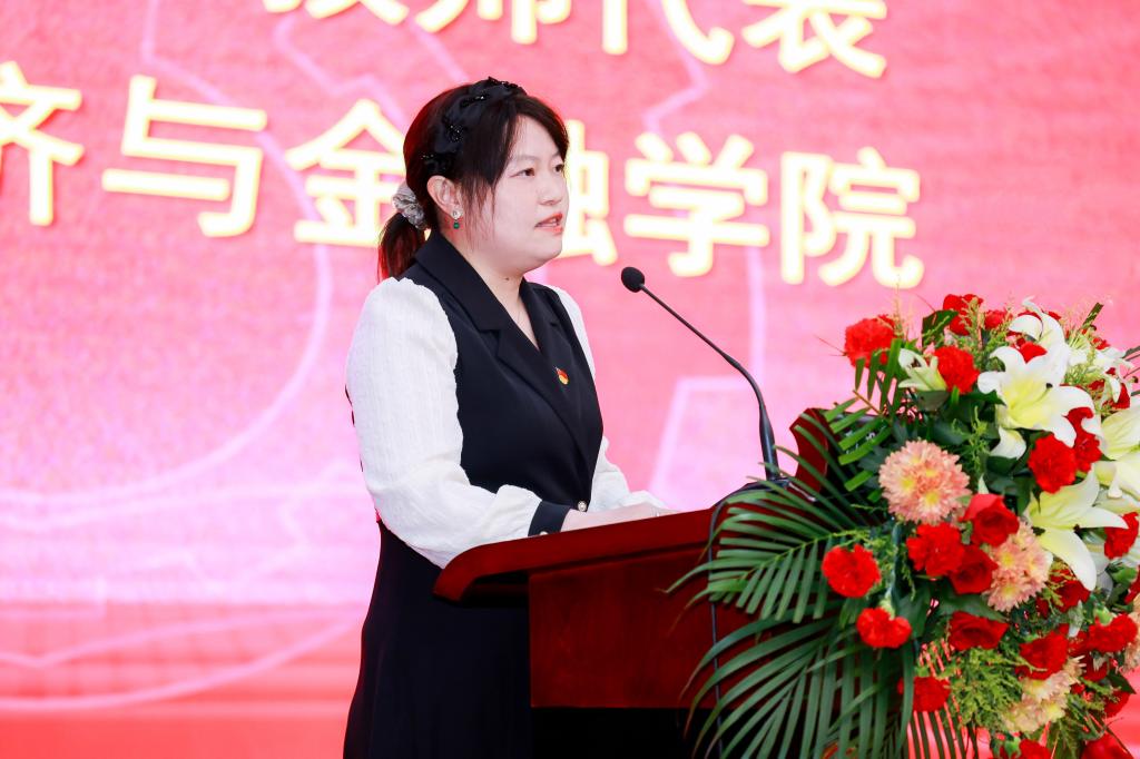 教师代表、经济与金融学院白丹在发言中表示,全体教师将以校庆为契机,牢记立德树人初心,坚持以德立身、以德施教,争做“四有”好老师,成为推动学校改革和发展的先锋和行动派,为国家和区域经济社会发展培养更多高素质应用型人才,为城院更加美好的未来共同努力奋斗!