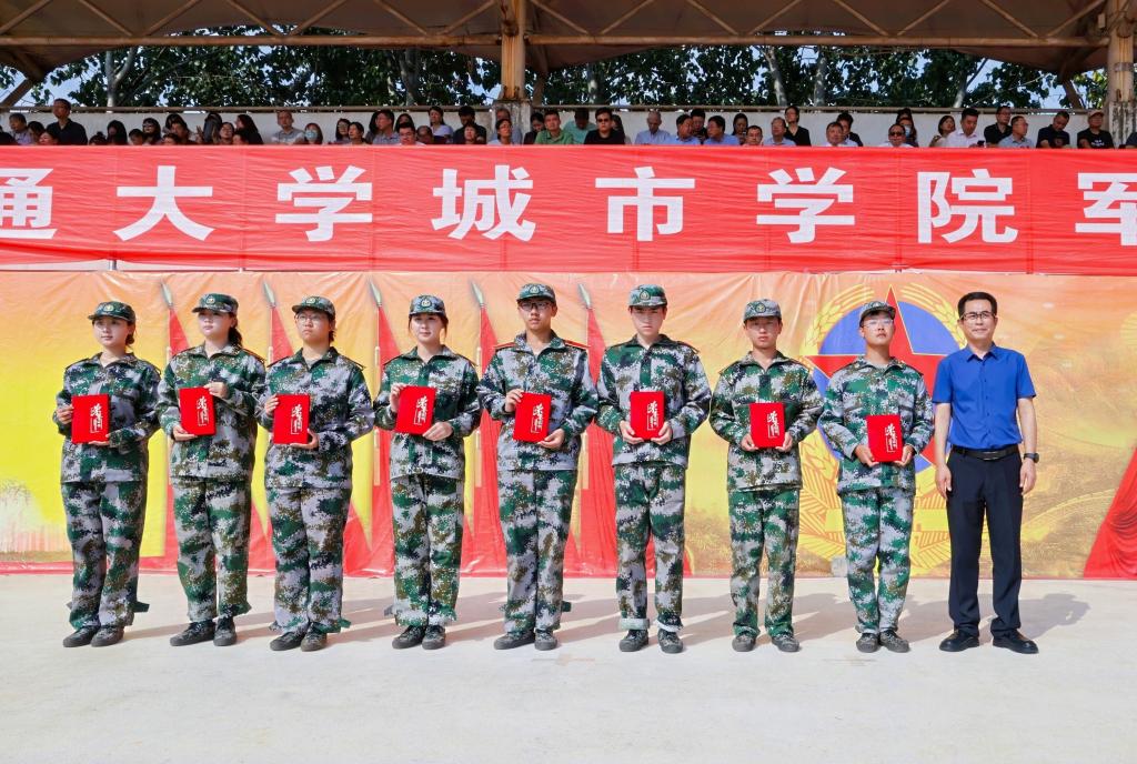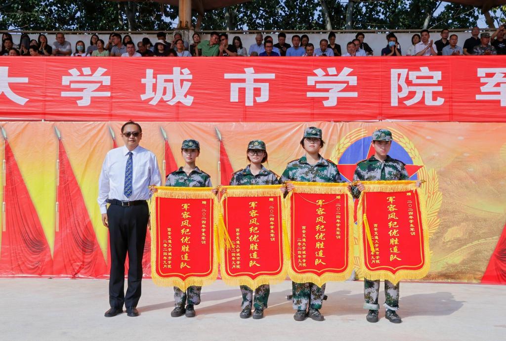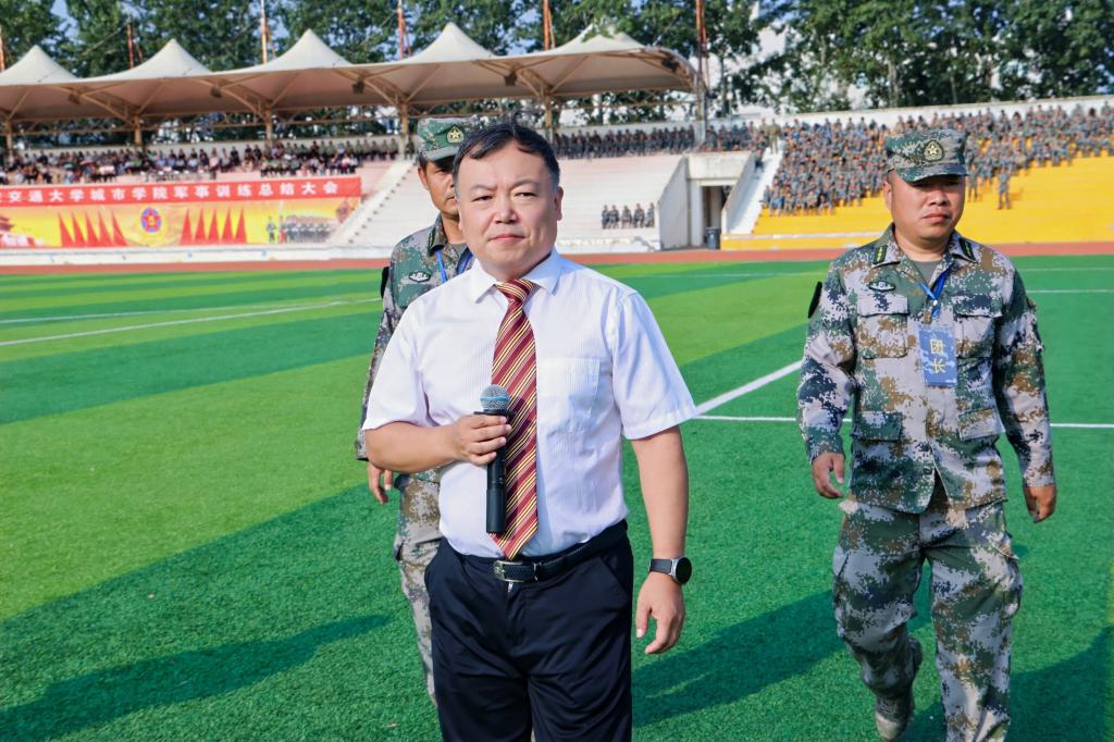 最后,军训团政委辛红伟对本次军训工作进行总结汇报。他充分肯定了同学们在军训期间的努力和进步,对为军训工作辛勤付出的教官、指导员和后勤保障人员表示感谢,向获得嘉奖和表彰的优秀集体和个人表示祝贺,同时对全体新生提出了三点希望:一是传承好军训优良作风,志存高远,厚植家国情怀;二是脚踏实地,努力在勤学实干中精进致远;三是敢于拼搏,勇于在攻坚克难中自强不息。