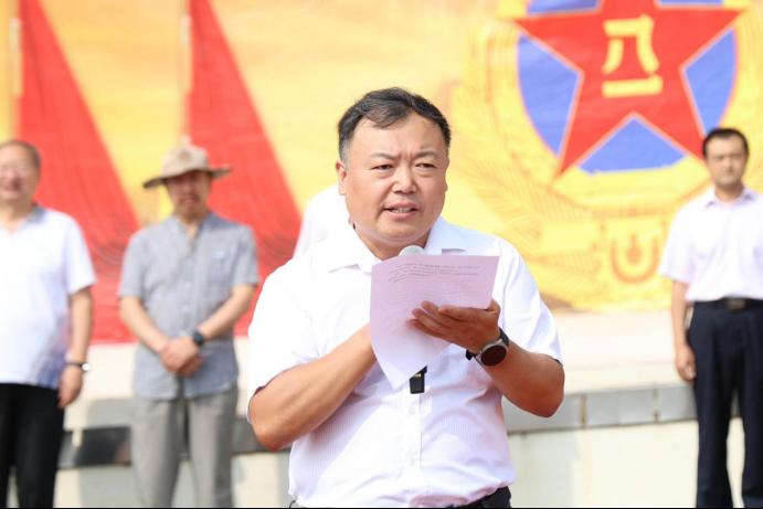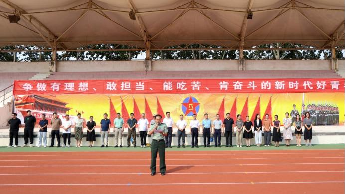 军训团团长代表军训团致谢辞,他向各位领导顶着烈日前来慰问军训团全体成员表示感谢,并代表军训团承诺,在接下来的训练中将以更加饱满的热情,更加坚定的信念,更加严格的训练圆满完成本次军训任务。