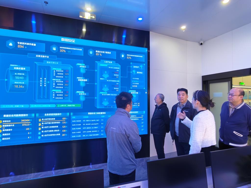 张栩笛总经理对学校的来访表示热烈的欢迎,张文晓技术总监带领学校一行参观了公司实验室、运营中心以及实训教室,并模拟展示了可信区块链数据安全、网络安全攻防演练、工业互联网安全等公司业务。