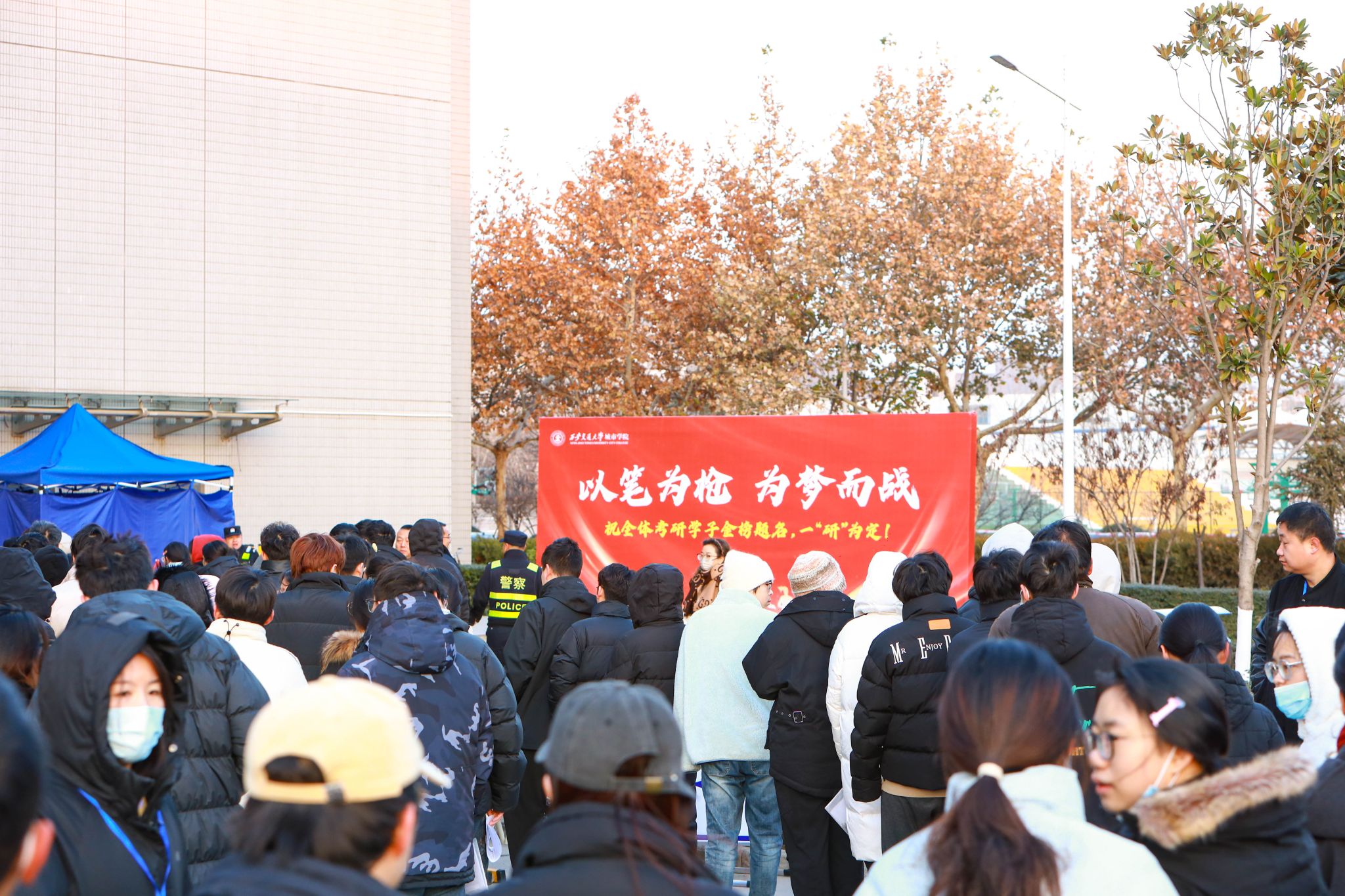 全校各相关部门通力配合,认真做好考试组考工作,对考生进校、安保规范、校园考试环境布置、考务组织与应急预案等进行了周密安排。3个志愿服务点、60名学生志愿者全天候为考生提供考场指引、物品存放等服务,为研考的顺利进行提供有力的保障。
