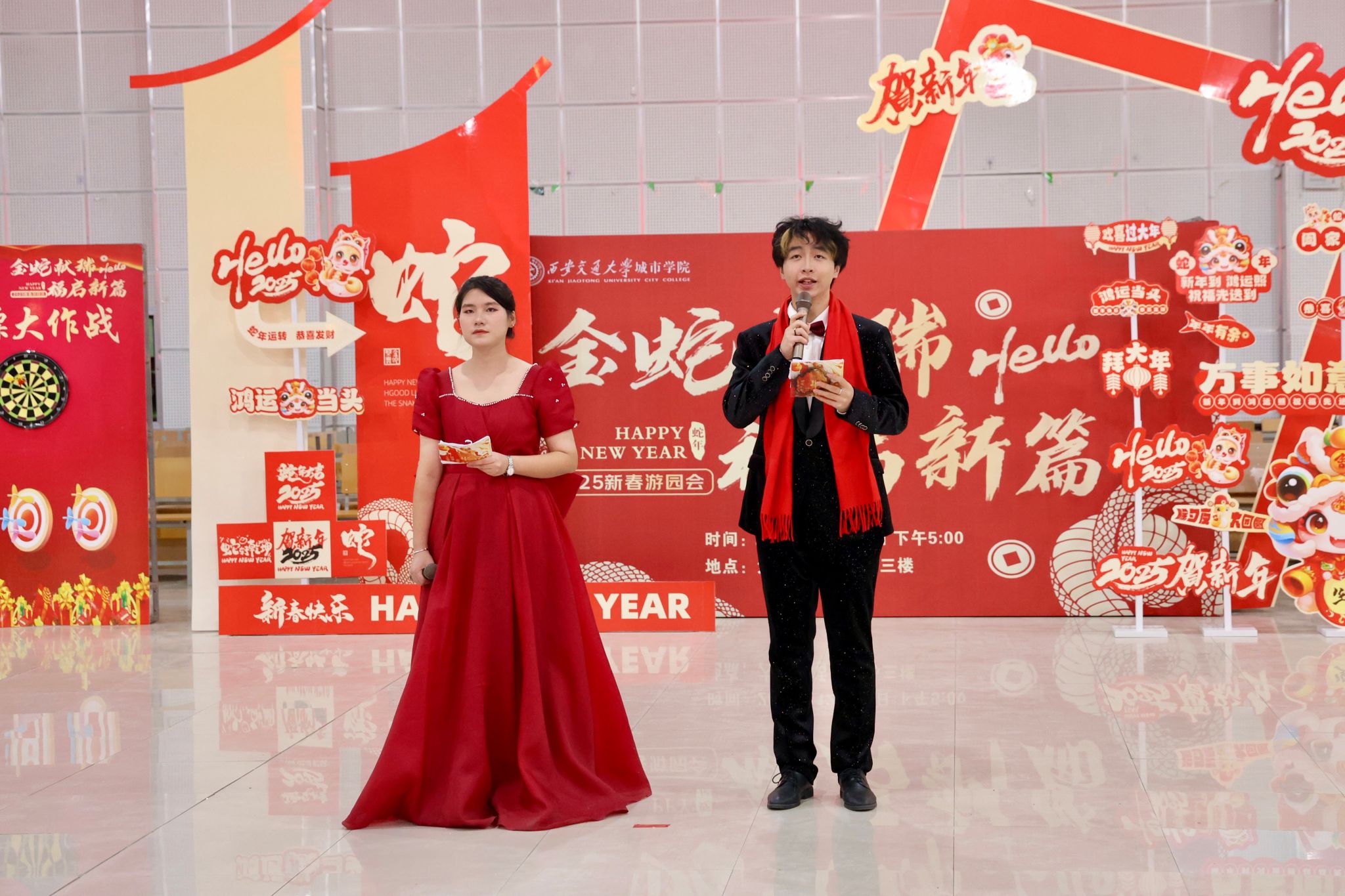 活动现场热闹非凡,充满了欢声笑语。文艺表演中,校团委徐兰君演唱了一首《阳光路上》,激昂的歌声点燃了现场的氛围。陕西杖头木偶戏非遗传承人张康瑞为大家展示了木偶戏长绸舞《梁祝》和《木偶变脸》等节目,校舞狮队在欢快的锣鼓声中舞动起来,灵动的身姿和栩栩如生的表情赢得了在场师生的阵阵掌声,校领导们共同为祥瑞之狮“点睛”,象征着吉祥和如意,为新春游园会增添了一抹喜庆的色彩。