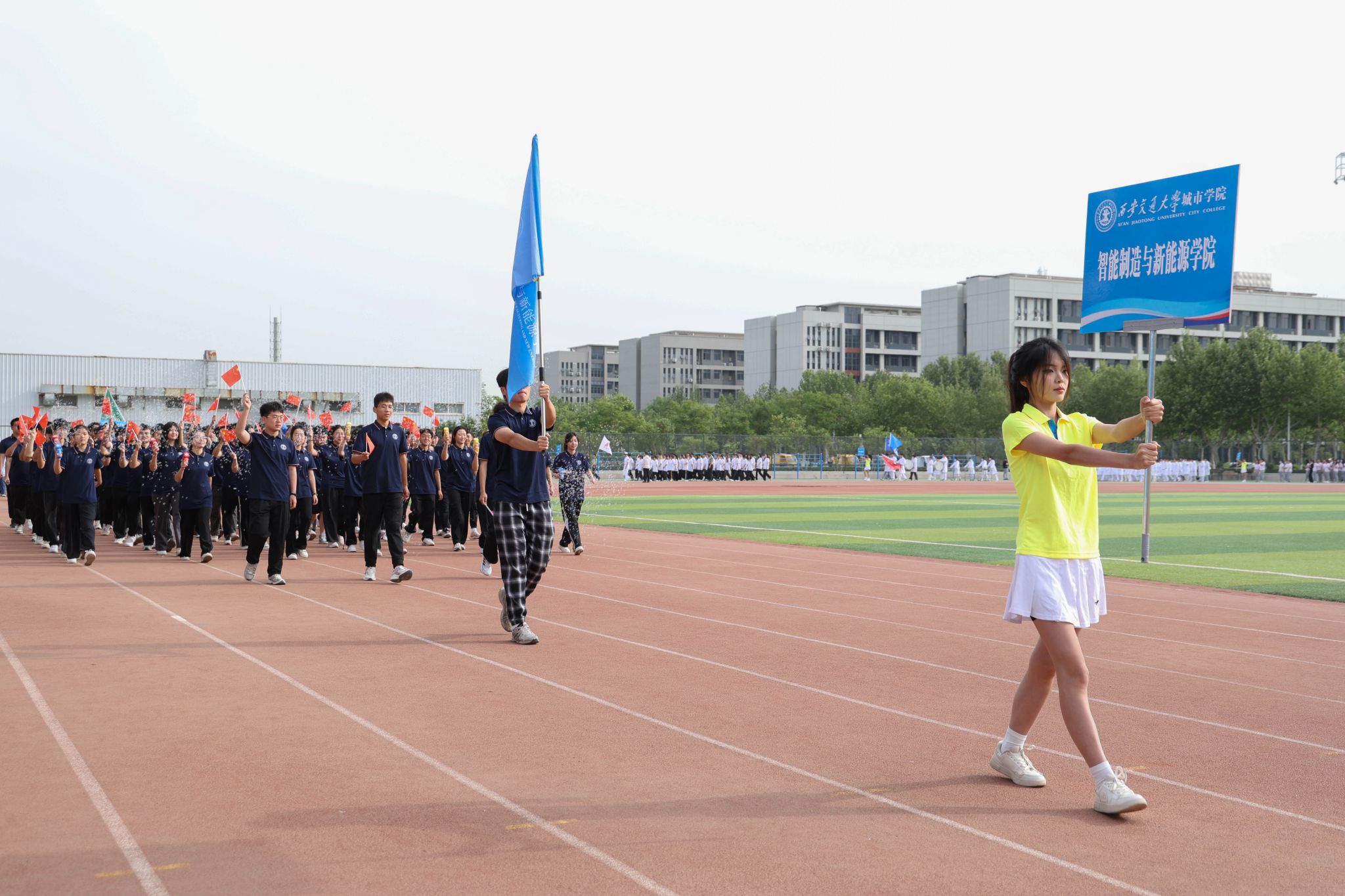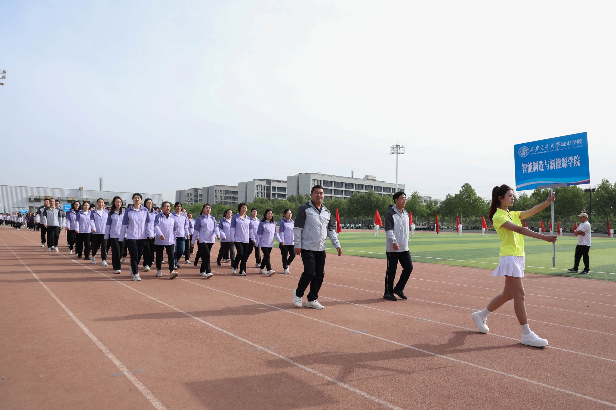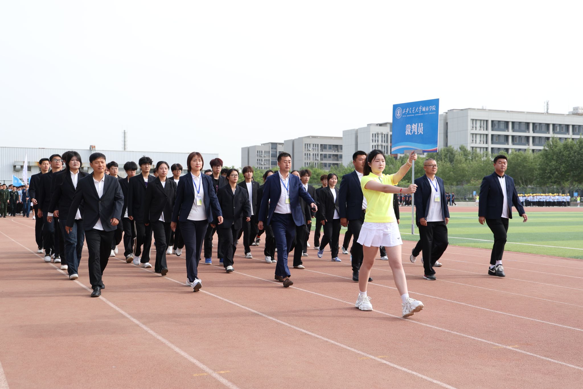 开幕式上,裁判员、运动员和各代表队逐一入场。在庄严的升国旗仪式后,党委副书记、副校长陈书荣致开幕词。他对本届运动会的召开表示热烈的祝贺,向全体筹备人员、运动员、裁判员及志愿者们致以诚挚问候。过去一年,在全校师生的积极参与和共同努力下,学校在体育领域取得了令人瞩目的成绩,每一份成绩都凝聚着师生在赛道上的汗水与坚持,诠释着“团结协作,顽强拼搏”的信念。本届运动会是对学校体育工作的全面检阅,更是师生展现风采的舞台。希望大家在运动中挑战自我,超越极限,赛出风格与水平,以拼搏的姿态展现城院人的昂扬风貌!
