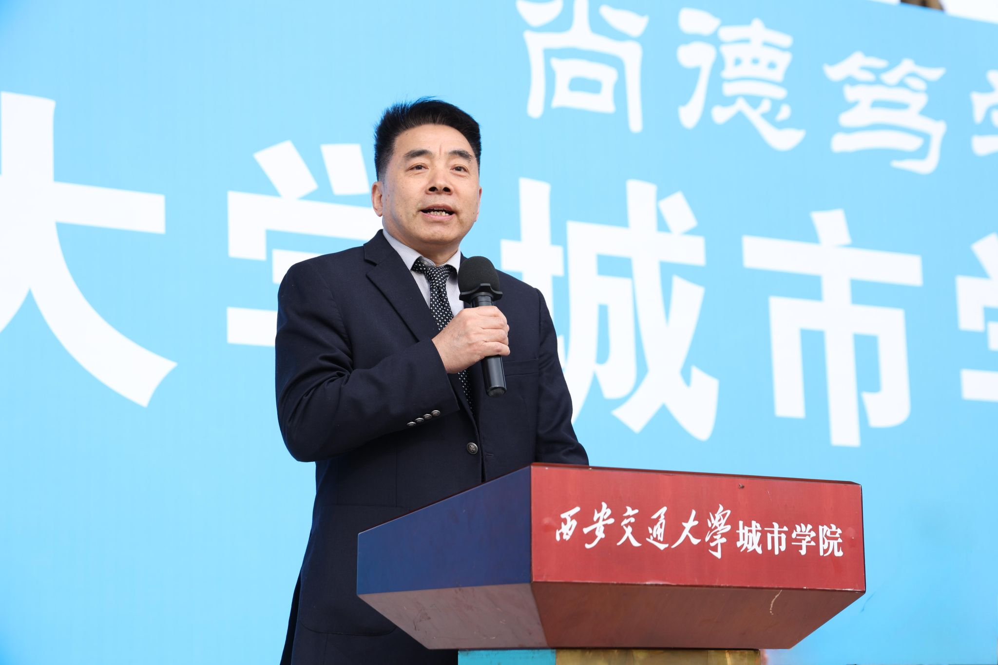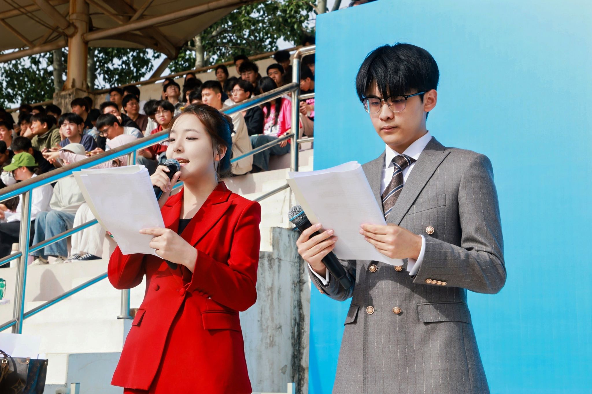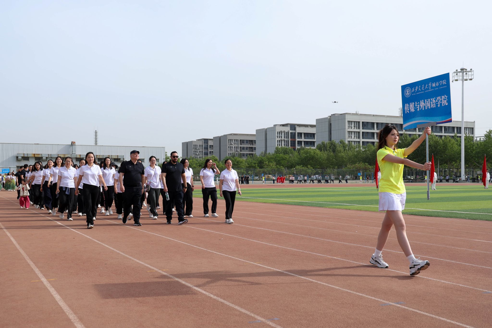 开幕式上,裁判员、运动员和各代表队逐一入场。在庄严的升国旗仪式后,党委副书记、副校长陈书荣致开幕词。他对本届运动会的召开表示热烈的祝贺,向全体筹备人员、运动员、裁判员及志愿者们致以诚挚问候。过去一年,在全校师生的积极参与和共同努力下,学校在体育领域取得了令人瞩目的成绩,每一份成绩都凝聚着师生在赛道上的汗水与坚持,诠释着“团结协作,顽强拼搏”的信念。本届运动会是对学校体育工作的全面检阅,更是师生展现风采的舞台。希望大家在运动中挑战自我,超越极限,赛出风格与水平,以拼搏的姿态展现城院人的昂扬风貌!