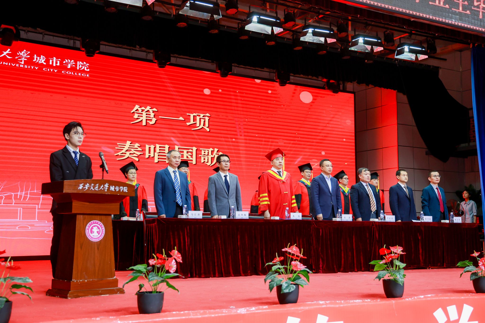 在庄严肃穆的国歌声中,大会正式开始。首先,党委副书记、副校长陈书荣汇报2025届毕业生学业情况。他对顺利完成学业,获得本科学士学位的同学们表示衷心的祝贺!希望大家以城院赋予的思辨力为帆,以奋斗精神为桨,在科技强国、产业振兴的时代浪潮中勇立潮头。