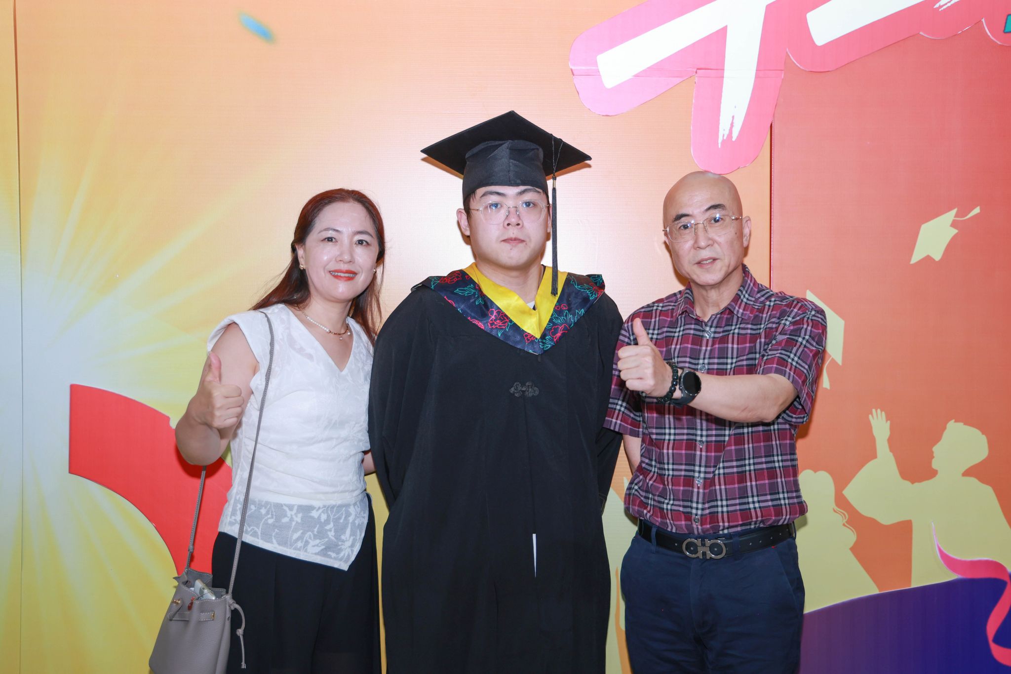 毕业生家长代表沈佩瑜女士向顺利毕业的同学们送上最真挚的祝福,希望大家始终保持积极乐观的心态,勇敢地面对生活中的风雨;不要忘记继续学习,常回家看看,与家人分享喜悦与烦恼;心怀感恩,感恩学校的培育、老师的教导、同学的陪伴,用自己的实际行动在各自的岗位上发光发热,为母校增光添彩,为社会作出贡献。