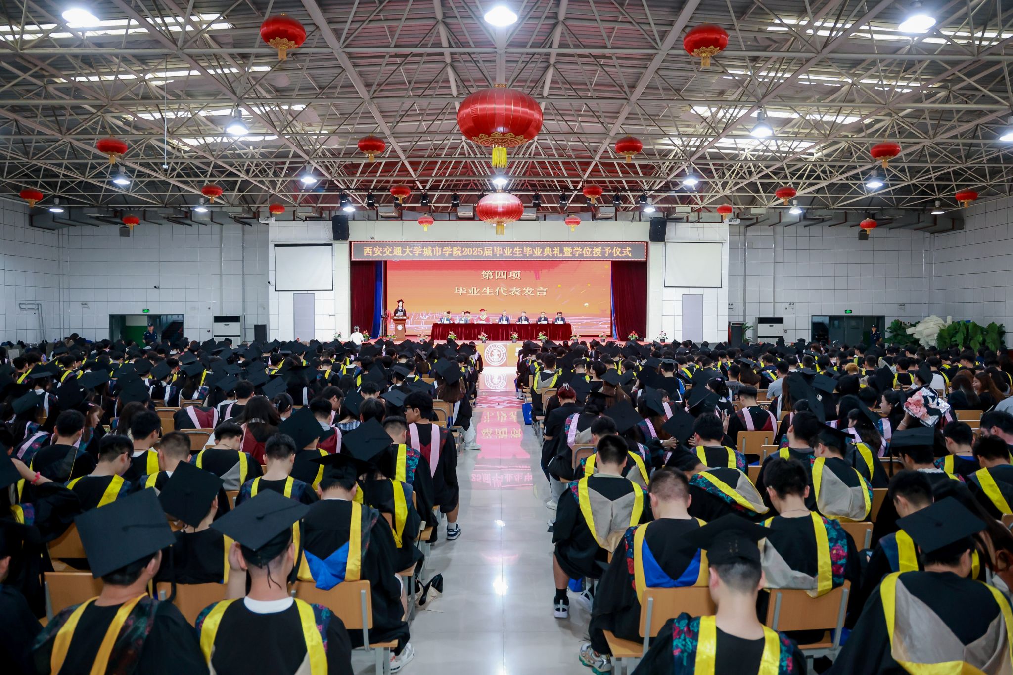 朱旭副校长(代理校长)寄语毕业生,与毕业生们一起回顾了大学四年间的点点滴滴,一同梳理了大学期间大家全方位的成长蜕变。在2025届毕业生即将走向未来广阔天地之际,他送给大家三个“心”,期望毕业生们将其内化于心、外化于行。一是永葆进取心,要保持终身学习的态度;二是坚守责任心,要牢记城院人的担当,传承“西迁精神”的家国情怀;三是保持平常心,既能享受成功的喜悦,也能坦然面对暂时的失意。他希望大家怀揣壮志,勇敢前行,以无畏之姿披荆斩棘,用拼搏之笔书写华章。无论大家身在何方,母校永远是大家坚强的依靠,母校的大门永远为大家敞开。在毕业生们即将开启人生新征程之际,他衷心祝福2025届毕业生们逐梦远方,前程似锦,未来可期!