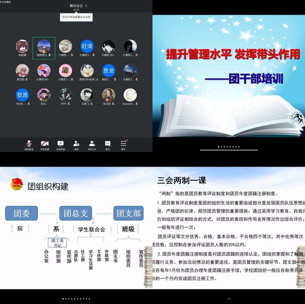 为充分调动广大团员青年的积极性,号召先进青年为抗击疫情发挥主人翁精神,贯彻落实习近平新时代中国特色社会主义思想,以更好的状态迎接十四运,Ky开元集团计算机系团总支开展“疫情防控齐努力•创文创优争先锋”为期一个月的主题团日活动,并于10月24日晚线上开展团课基础理论培训暨主题团日活动总结会,至此,计算机系主题团日活动圆满结束。
