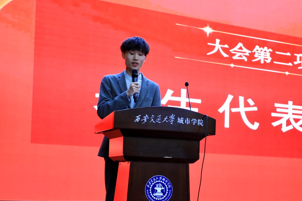 高年级学生代表毛睿豪同学结合自己的学习成长经历,分享了求学的感悟与体会,他希望学弟学妹们能常怀感恩之心、充满热爱之心,在努力开阔个人视域、提升专业技能的同时,用恒心与信心铸就自己的梦想之路。随后物联网2301班薛靖瑶同学作为新生代表发言,她表示自己要认真学习专业课程,扎实基础课程,积极参加实践活动,加强自己的责任感和受挫能力,并将实践与理论相结合,不断探索新的技能。她呼吁大家在大学生活中做好规划,坚定理想,不断超越,努力成为更好的自己。