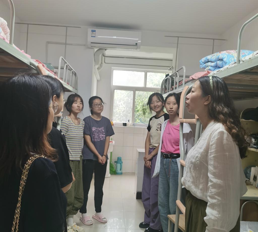 走访过程中,姚主任亲切地与新生进行交谈,细心询问入学后的住宿、就餐和生活用品等问题,给予他们解决的办法与思路,也希望同学们在日常生活中能与舍友相互尊重、相互理解,和舍友团结友爱、共同成长,齐心协力共同营造良好的住宿环境、学习氛围。