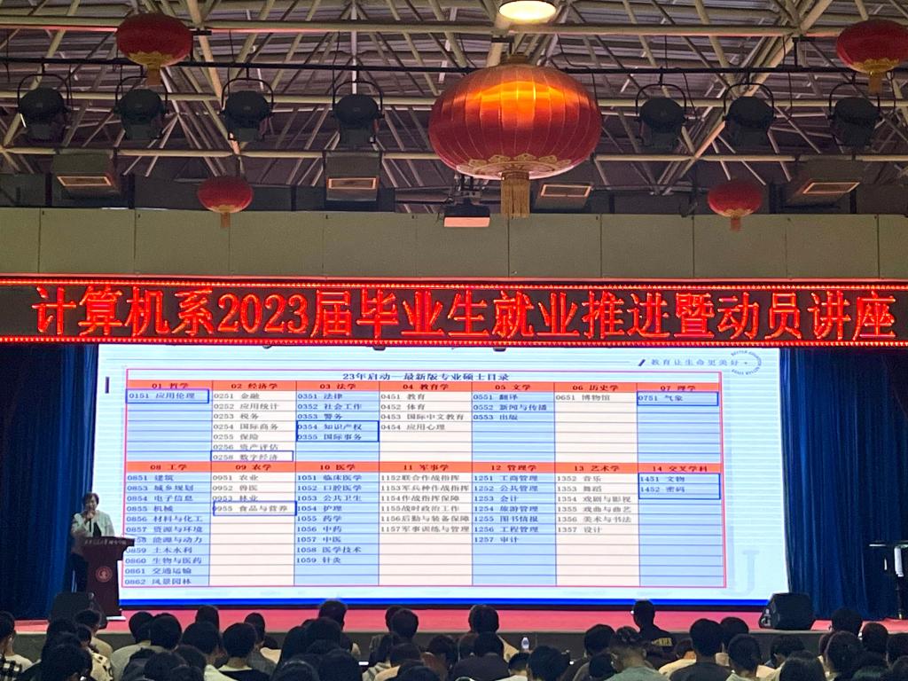 为促进计算机系毕业生更充分和更高质量就业,抢抓秋招促就业关键期,全力促进2023届毕业生顺利就业、尽早就业。9月27日晚,计算机系在大学生活动中心开展了2023届毕业生就业推进暨动员讲座。计算机系主任姚全珠、学工负责人崔佳楠、毕业班班主任江帆以及大三大四全体辅导员老师出席本次活动,本次活动还特别邀请校外大学生涯规划讲师杨波老师作主题讲座,计算机系全体大三大四学生参加。