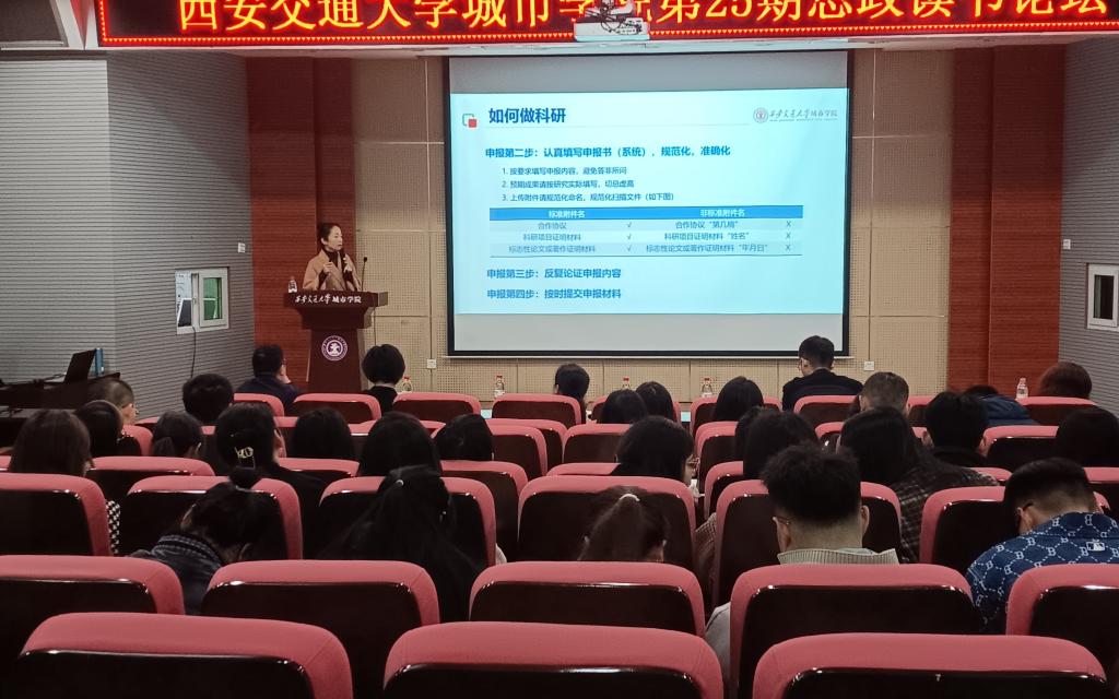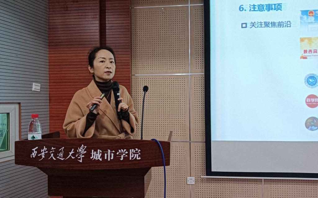 科技服务中心副主任刘静以“立足岗位,潜心钻研——浅谈辅导员&科学研究”为题对大家进行培训,刘老师鼓励大家排除畏难情绪,将工作实践转化为科学研究。刘老师从申报书的填写要求、申报材料的准备、申报要求等方面详细讲解了如何做科研,解决了各位辅导员老师对科研项目申报的疑惑。