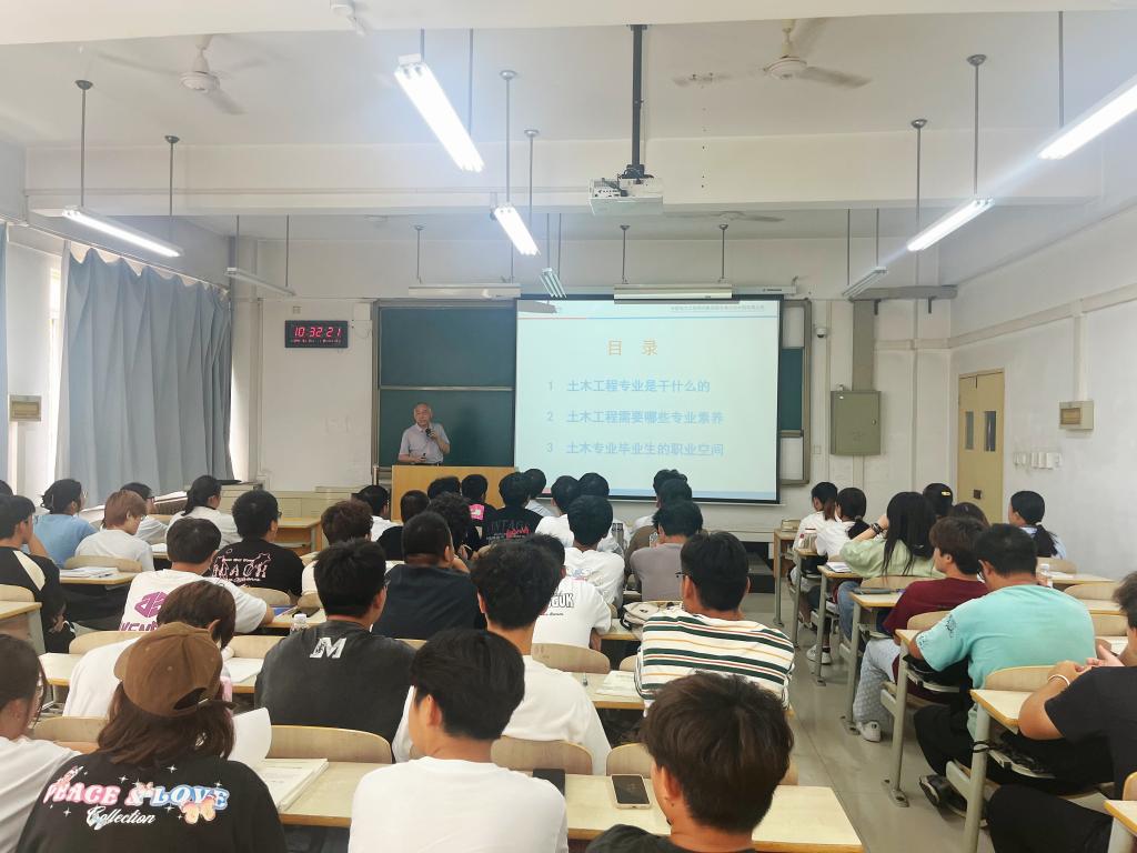 开学第一周,土建学院2024级新生迎来了大学第一堂专业课《专业概论》。该门课程是新生专业教育的“第一粒纽扣”。为更好的引导学生认识专业,培养专业兴趣,建立敢于担当的责任意识,土建学院结合新时代大学生特点,采用“大师进课堂”和“专题讲座交流”等形式,全面提升《专业概论》教学实效。