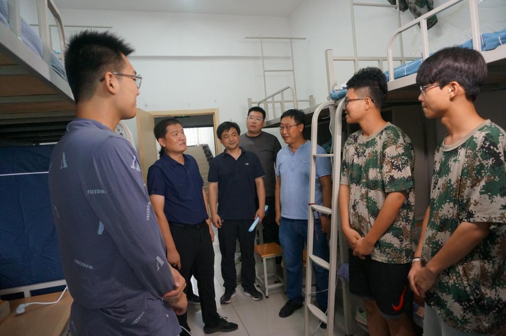 8月25日下午,物理与新能源学院院长牛海波、副院长兼新能源系主任竹有章、新能源系副主任赵蓓、班主任赵云芳、辅导员樊超、办公室秘书袁芳一同走访新生宿舍,为学生们送去温馨的关怀并与同学们进行了深入交流。