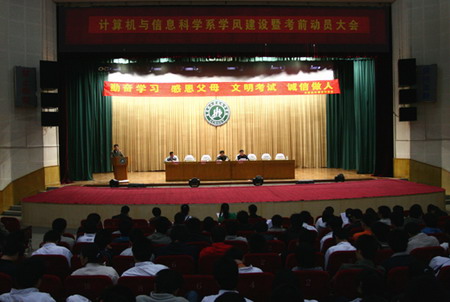 12月17日,计算机与信息科学系在学院大礼堂召开学风建设暨考前动员大会。学生处处长章德胜,计算机与信息科学系主任牛熠博士、副主任廉玉忠教授及该系辅导员、班主任和1200多名学生参加了会议。 会上,牛主任作总动员,强调学