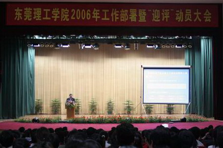 大会会场 市委副书记 东莞理工学院临时党委书记刘树基主持会议并发表重要讲话 东莞理工学院院长杨晓西教授作报告 3月9日,东莞理工学院在城市学院大礼堂召开全院教职工大会。会议部署2006年工作,着重动员全体教职工迎接省新增