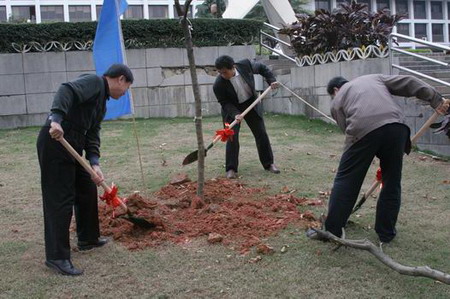 3月14日,在党委书记朱志德同志、常务副院长程发良教授、副院长林世俊教授的带领下,我院学院机关、教学行政40多名教职员工参加了植树活动。 阳春三月乍寒乍暖,但是今天风和日丽,是到户外植树的好天气。此次植树地点定在人