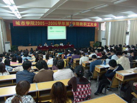 东莞理工学院城市学院2005—2006学年第二学期教职工大会本月16日在5号梯形教室召开。 党委书记朱志德主持会议,常务副院长程发良教授做了关于2005年工作总结和2006年工作要点的报告。副院长林世俊教授就开学情况和如何培养学生能力问