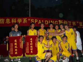 为期两周的计算机与信息科学系首届“斯伯丁杯”篮球赛,于11月2日在学生篮球场落下帷幕。技术科学部04级通信代表队技压群雄,获得冠军。 本次大赛由计算机系学生会主办,体育部承办。全系24个班级12支代表队参加了比赛。经过15场比