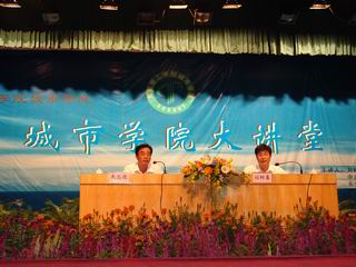 11月3日晚上,我院举行《城市学院大讲堂》第四讲,特邀中共东莞市委副书记、东莞理工学院党委书记刘树基作形势报告。1600多名师生到会听取了刘书记的报告。 刘书记在回顾东莞撤县设市以来的1984、1994和2004三个时间段国民生产总值、财
