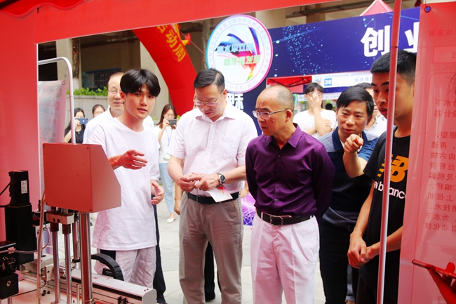 出席此次活动的嘉宾还有:东莞市人力资源和社会保障局寮步分局培训就业股股长邓镇铎、东莞市科技企业孵化协会副秘书长朱雨川。学院领导章德胜、高香林、黄兢、周庆、刘玉侠、江龙以及各单位负责人出席了开幕仪式。与会领导为联合孵化中心进行了揭牌,并参观了大学生创业孵化基地成立两周年成果展。